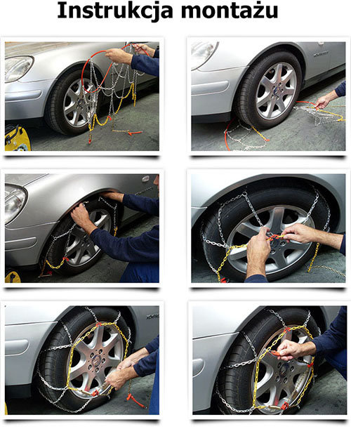 El juego incluye dos cadenas de nieve, una práctica bolsa de transporte, un juego de eslabones de reparación, guantes de plástico y un manual de instrucciones claro. La velocidad máxima con las cadenas de nieve instaladas es de 50 km/h , lo que cumple con la norma para esta categoría y garantiza un manejo cómodo y seguro.
