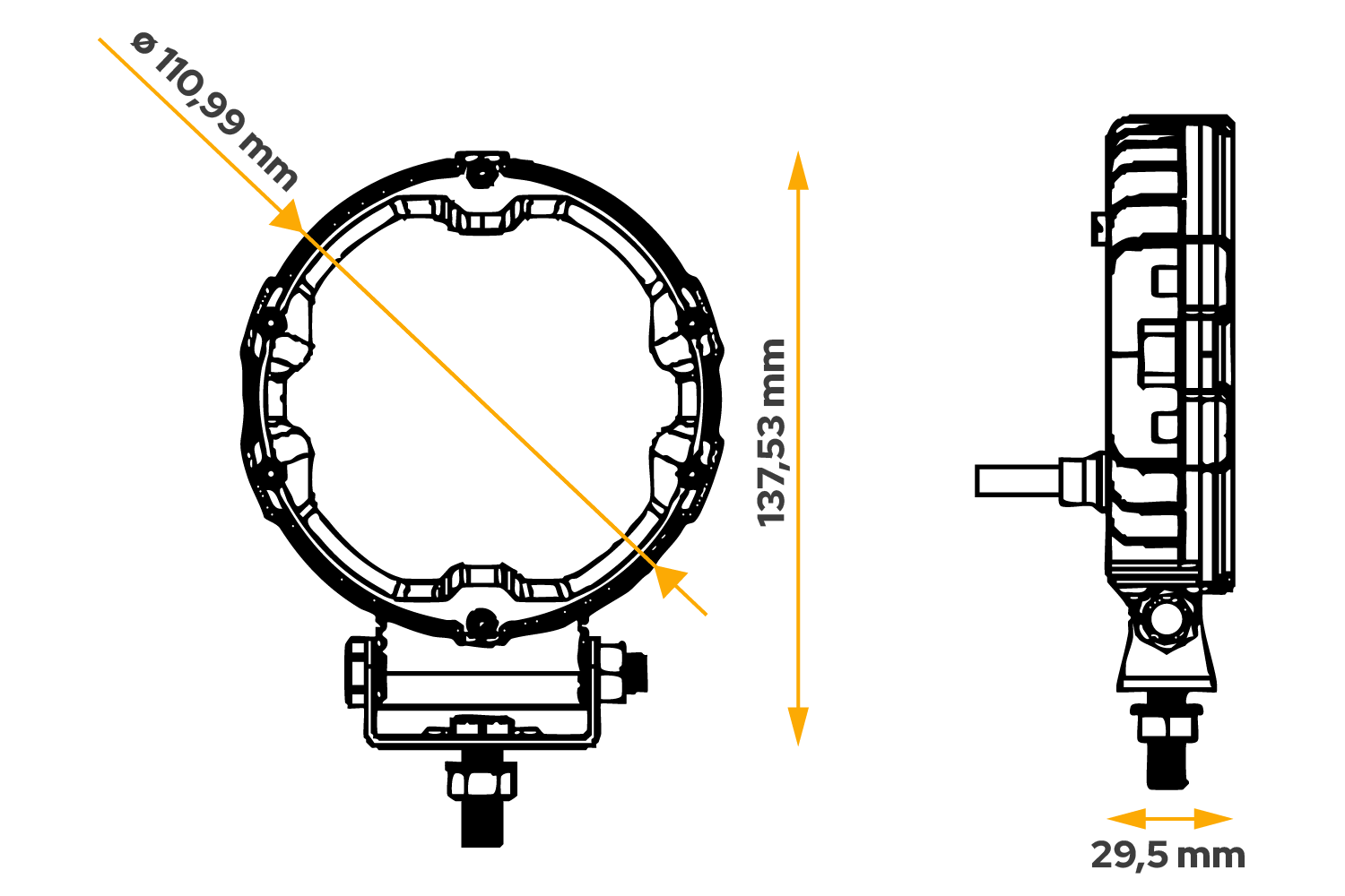 La lámpara de trabajo X-SPIDER 3 de KAMAR es una fuente de luz LED universal diseñada para entornos hostiles. Es ideal para vehículos comerciales, maquinaria agrícola, de construcción y todoterreno, así como para embarcaciones y como iluminación adicional para autobuses y camiones. Presenta un diseño robusto con dimensiones de 111 mm de diámetro y 29,5 mm de profundidad , y funciona con un rango de voltaje de 12-24 V. Un cable de 0,3 m facilita la instalación y la conexión, incluso en zonas de difícil acceso. La carcasa de la lámpara está fabricada con materiales duraderos, lo que garantiza su resistencia a golpes y daños mecánicos en condiciones de trabajo exigentes.