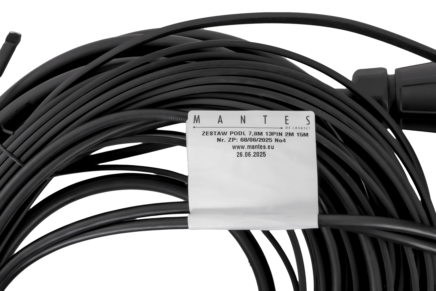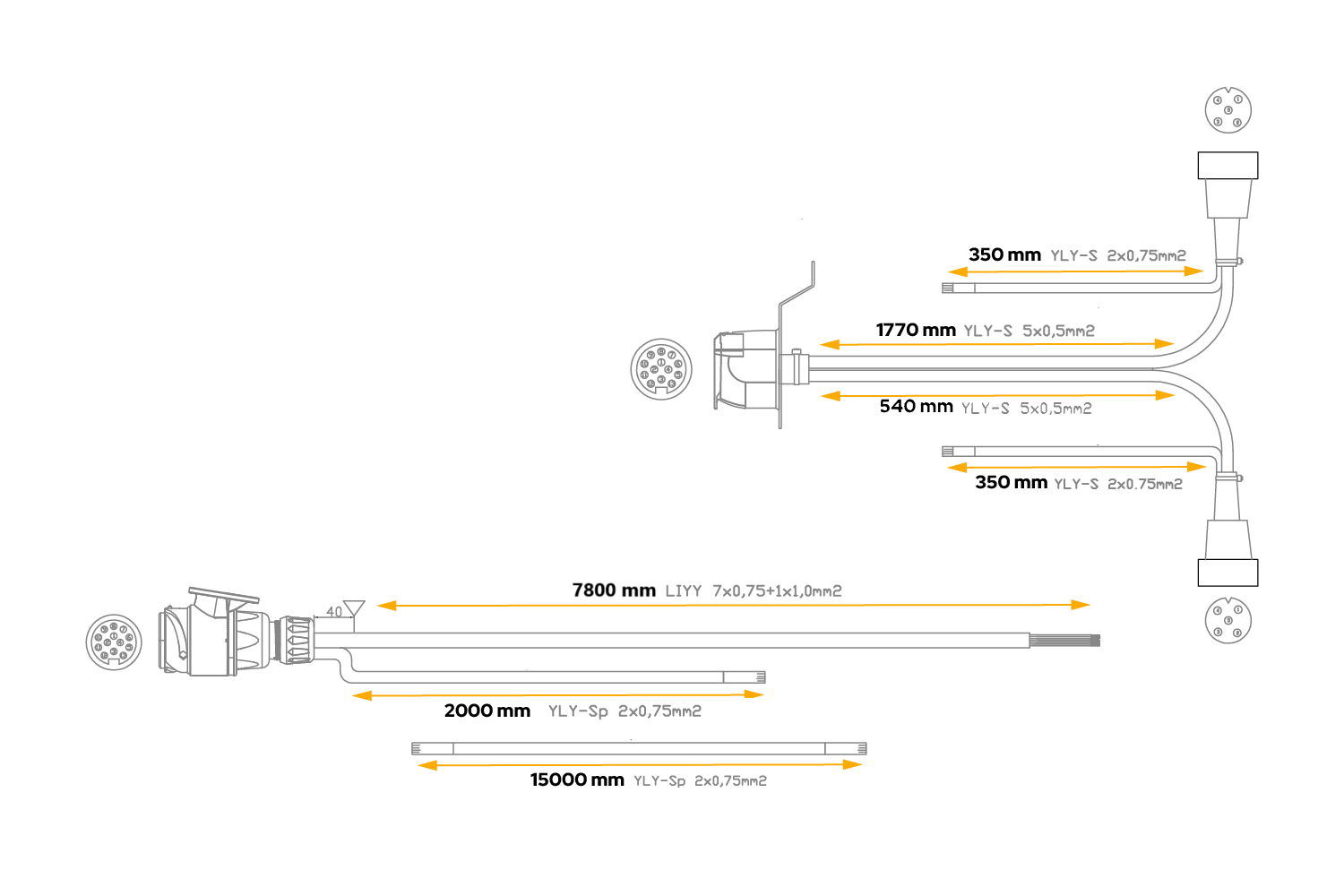 La primera parte es el arnés principal con un enchufe de 13 pines de 7,8 metros de longitud, junto con un cable de luz de gálibo de 2 metros para conectar el sistema eléctrico del vehículo tractor a la viga trasera del remolque. El kit también incluye un enchufe de 13 pines para automontaje en la viga , lo que permite conectar y desconectar rápidamente todo el haz de luz.