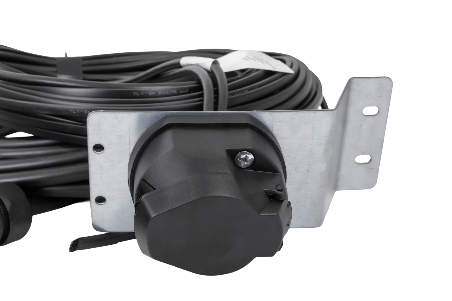 El conjunto se complementa con un cable adicional de 15 metros para una cómoda conexión de luces de posición situadas a lo largo de toda la longitud del remolque.