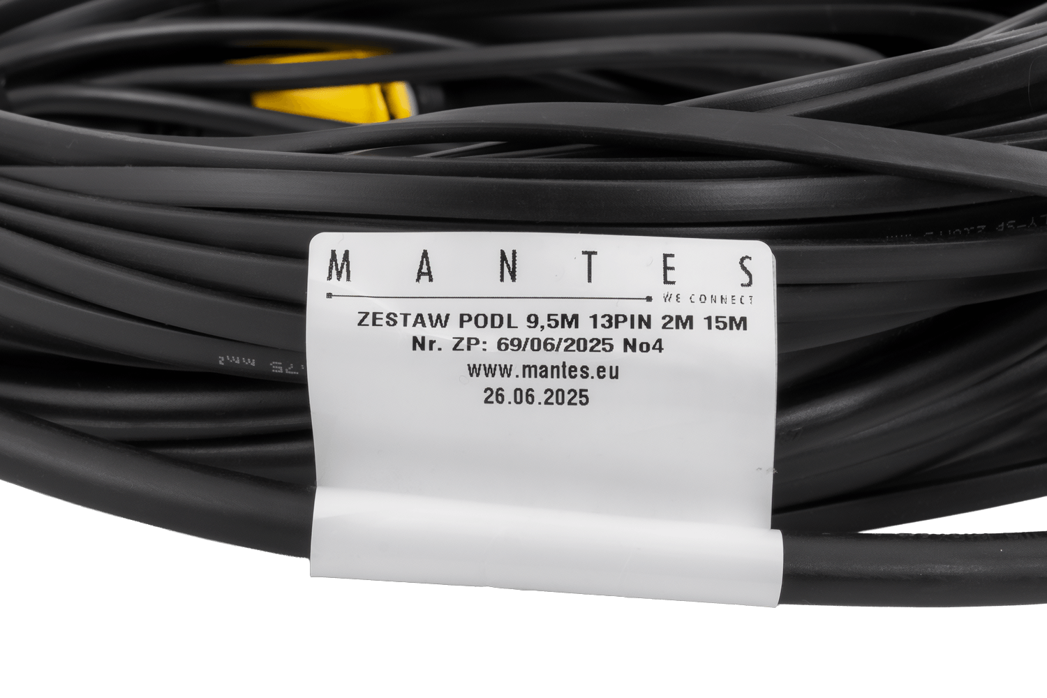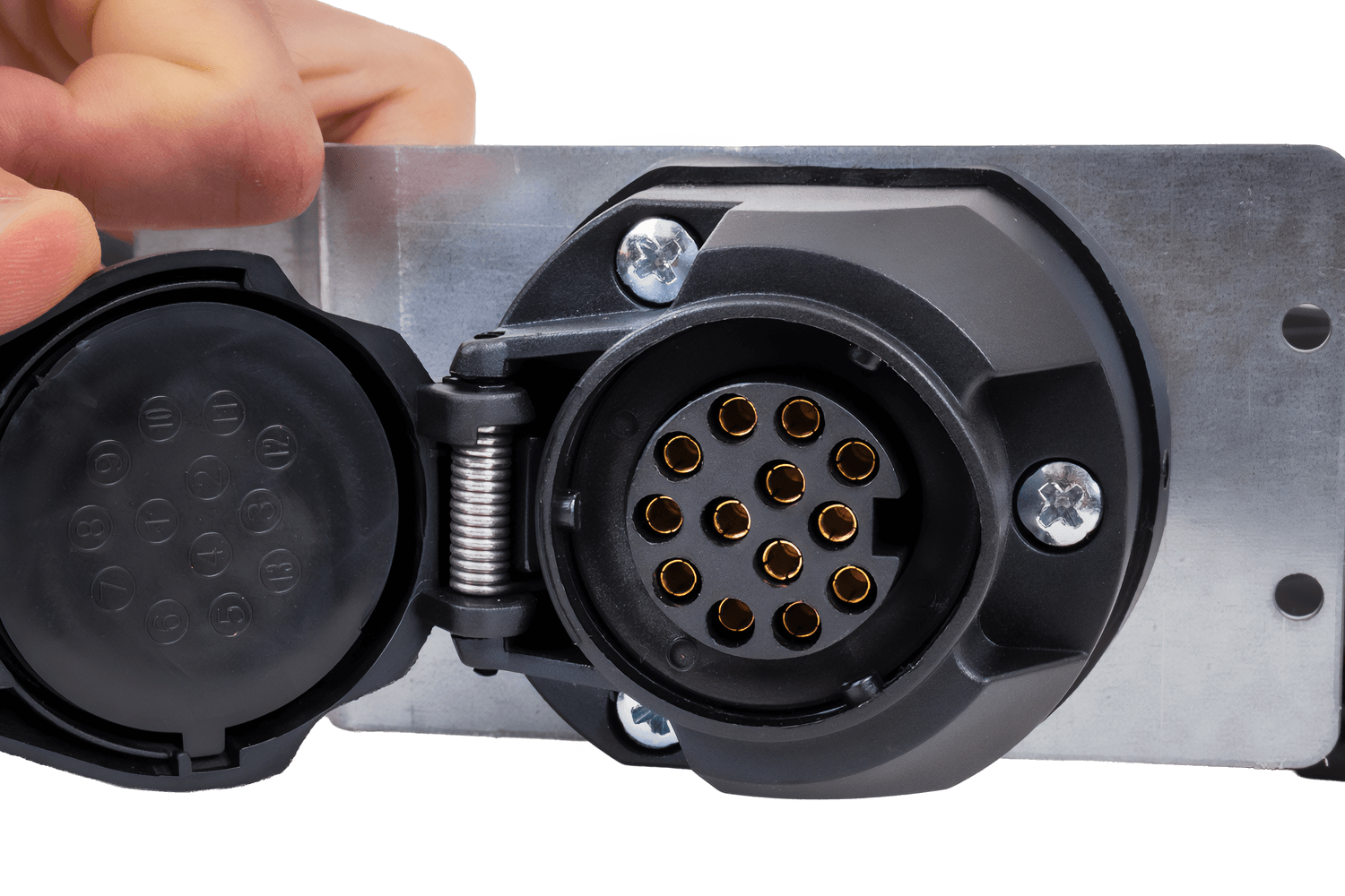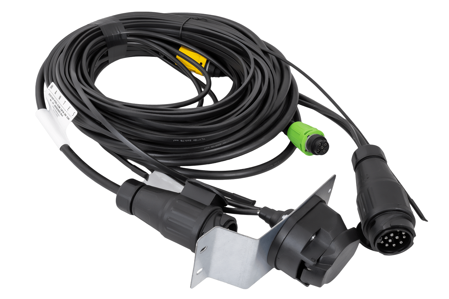 La primera parte es el arnés principal con un enchufe de 13 pines de 9,5 metros de longitud, junto con un cable de luz de gálibo de 2 metros para conectar el sistema eléctrico del vehículo tractor a la viga trasera del remolque. El kit también incluye un enchufe de 13 pines para automontaje en la viga , lo que permite conectar y desconectar rápidamente todo el haz de luz.