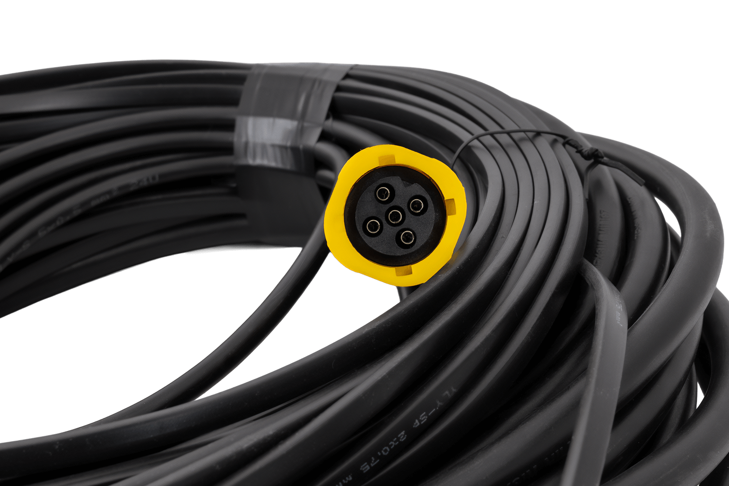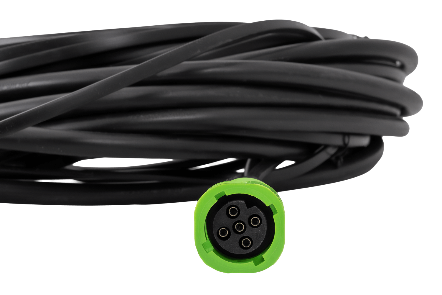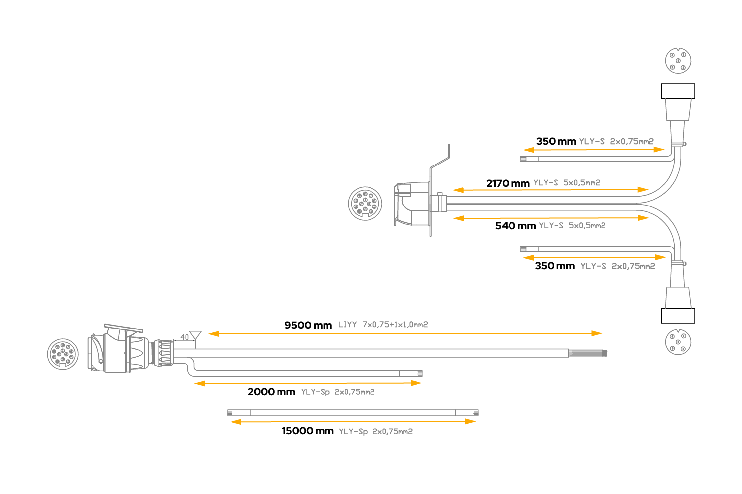 La segunda parte incluye un conector para la barra de luces traseras (p. ej., la que se retira para botar una embarcación). El cable tiene 2,17 metros de longitud y termina en conectores de bayoneta de 5 pines para conectar las luces traseras. Cuenta con un alto grado de sellado IP67 , lo que proporciona una excelente protección contra el agua, el barro y el polvo, ideal para su uso en condiciones húmedas, como el transporte en barco o el uso todoterreno. Además, el cable cuenta con una derivación integrada para dos cables de 0,35 metros cada uno para las luces de posición, que marcan eficazmente las dimensiones del vehículo tanto de día como de noche, mejorando la seguridad durante las maniobras y la conducción en condiciones difíciles.