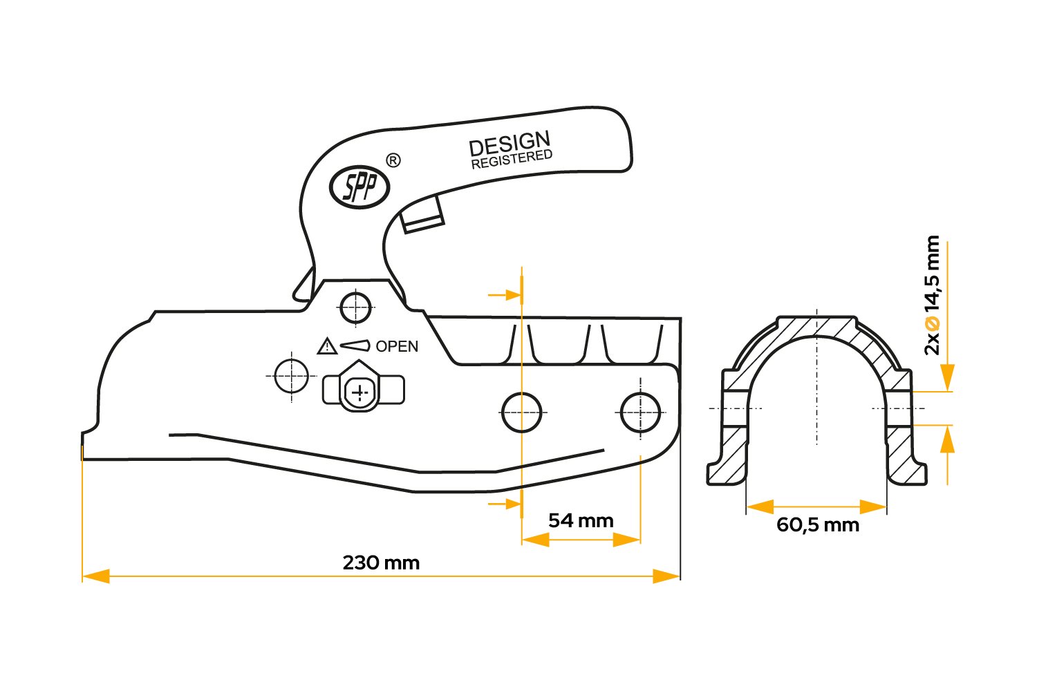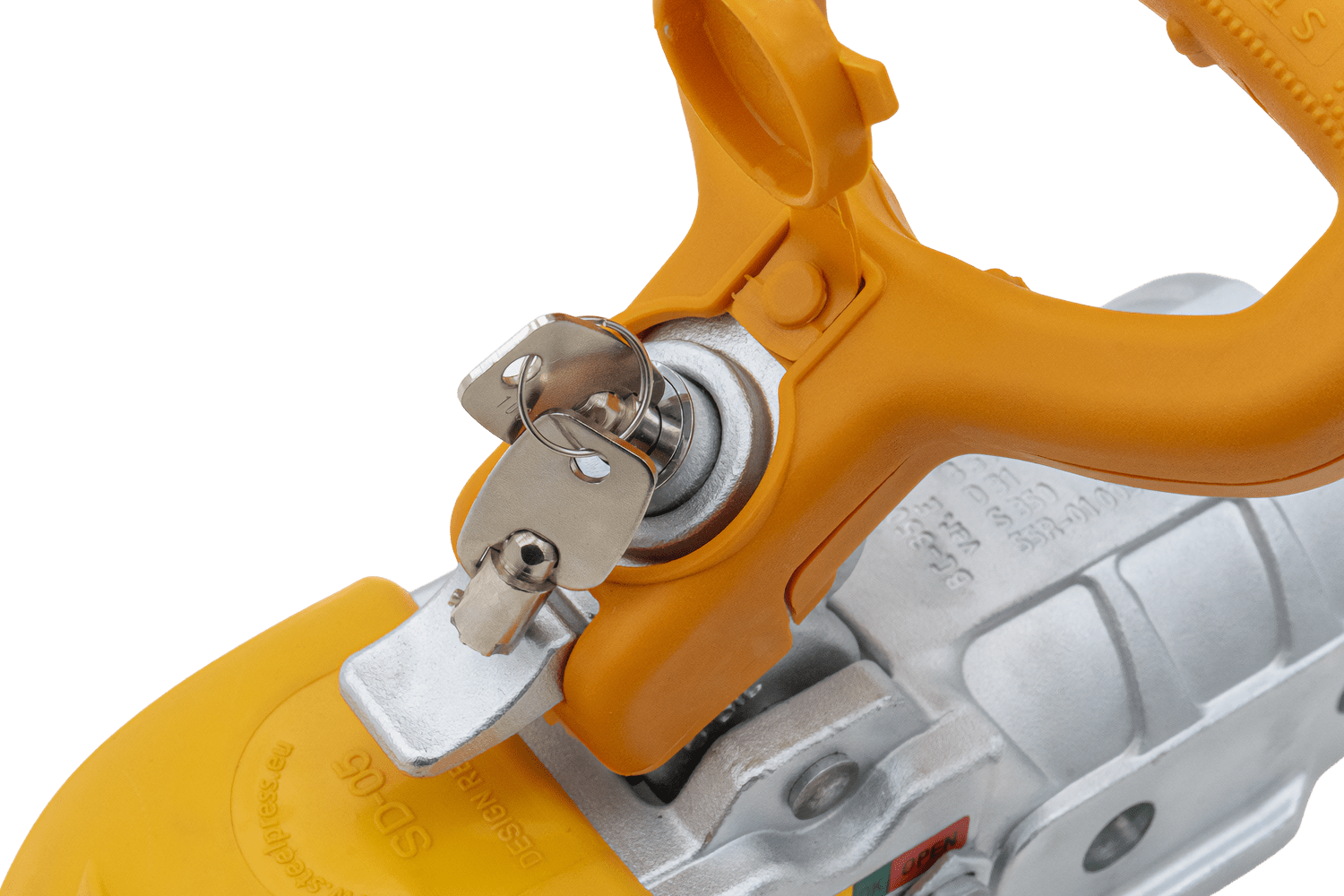 El cabezal del enganche tiene un cuerpo de fundición a presión, y la palanca, también de fundición a presión y con revestimiento de plástico, está equipada con un bloqueo antirrobo reforzado y una toma de corriente para remolque . El enganche cuenta con una cubierta SD de elastómero suave y duradera que protege la parte trasera del vehículo de arañazos y las piernas del usuario de impactos durante las maniobras. Esta solución combina seguridad y facilidad de uso .