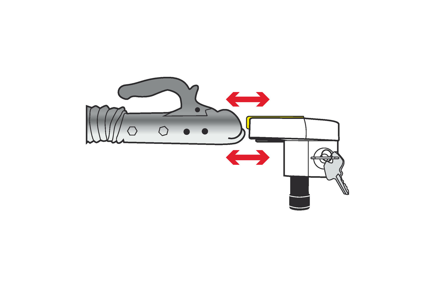 El bloqueo impide que el enganche se conecte o desconecte de la bola de remolque, inmovilizando eficazmente el remolque al estacionar. Es ideal para estacionamientos, campamentos y patios de almacenamiento, ya que ofrece una solución mecánica rápida que aumenta la seguridad del remolque. Su fácil instalación y desmontaje fomenta su uso cada vez que se detiene.