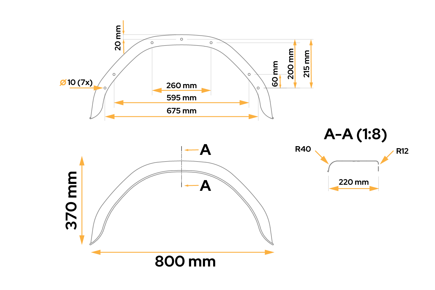 El guardabarros simple DE HAAN HMHR 2280, diseñado para llantas de 15 y 16 pulgadas, es un accesorio fiable para remolques y otros vehículos. Mide 800 mm de largo, 220 mm de ancho y 370 mm de alto . El guardabarros cuenta con orificios de montaje de fábrica para una instalación rápida y precisa en su vehículo.
