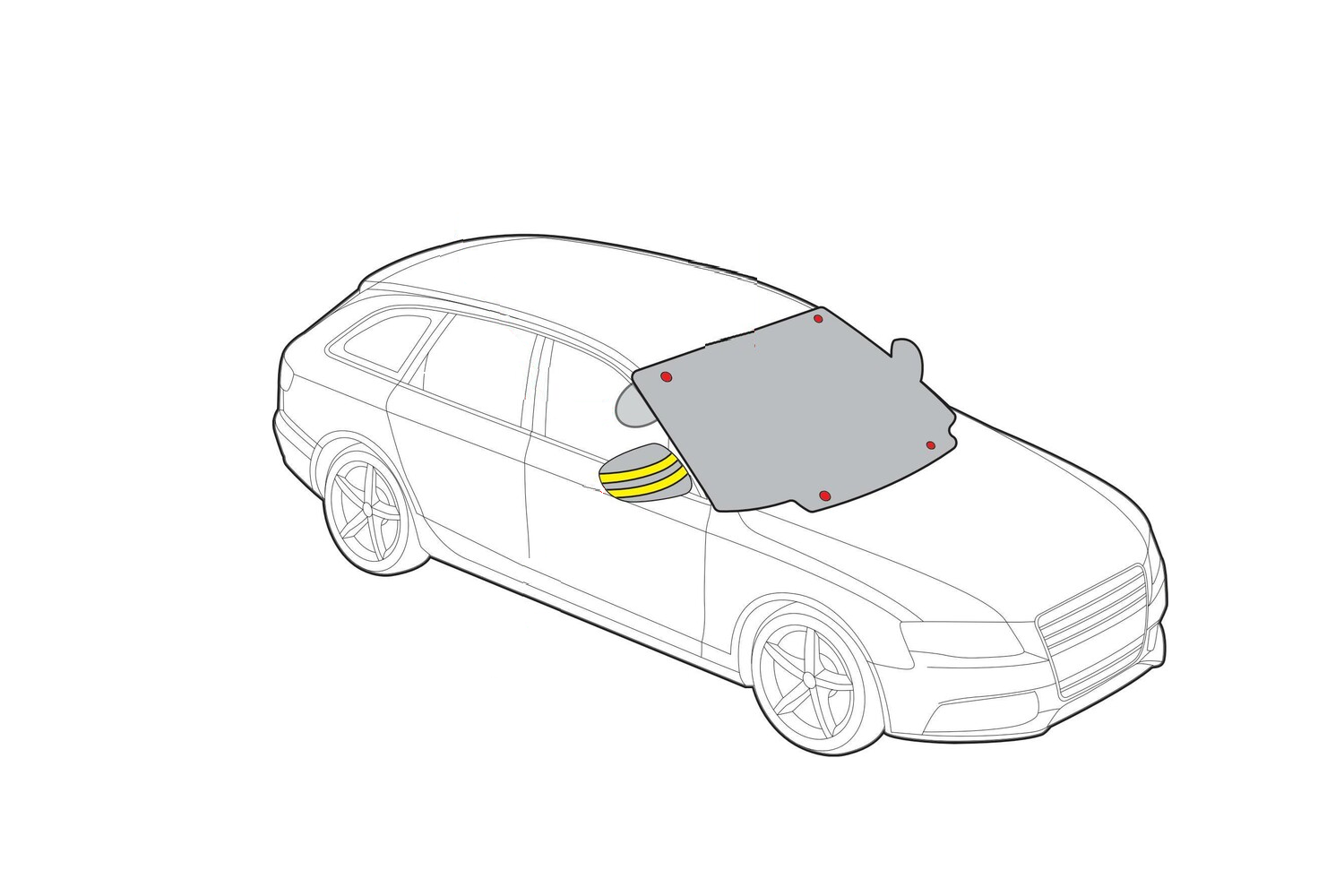 La cubierta magnética para parabrisas y espejos laterales 4 Seasons es universal y se adapta a la mayoría de los autos. Mide 147/185 × 120 cm . Dos cubiertas especiales con detalles reflectantes cubren completamente el parabrisas y los espejos , mejorando la visibilidad de su auto estacionado al anochecer.