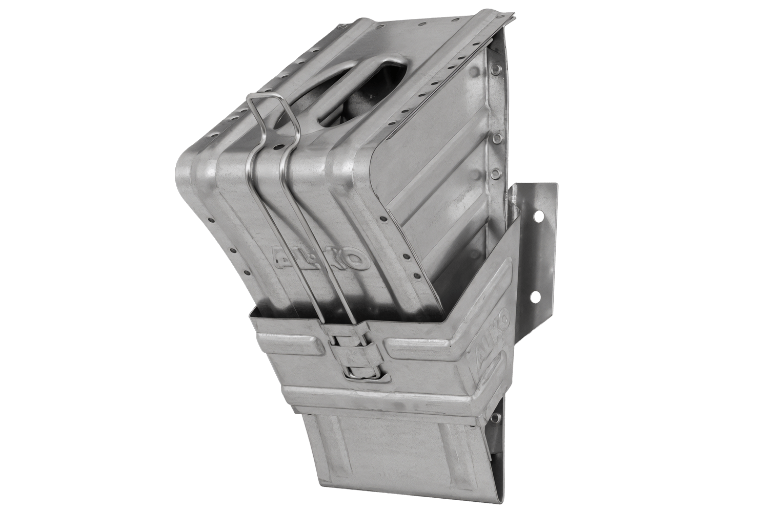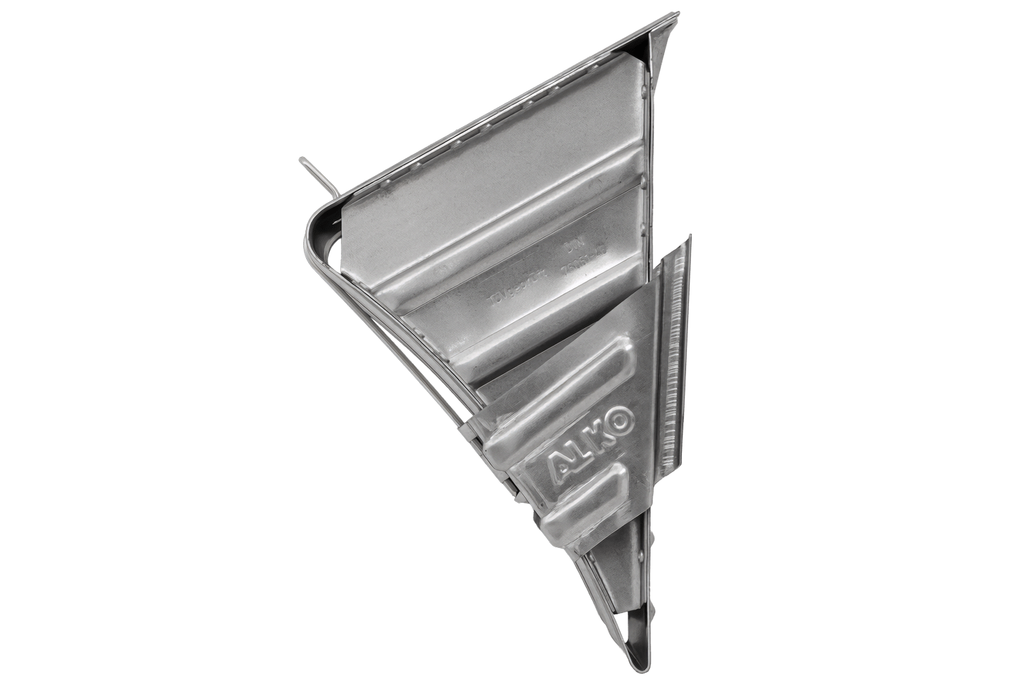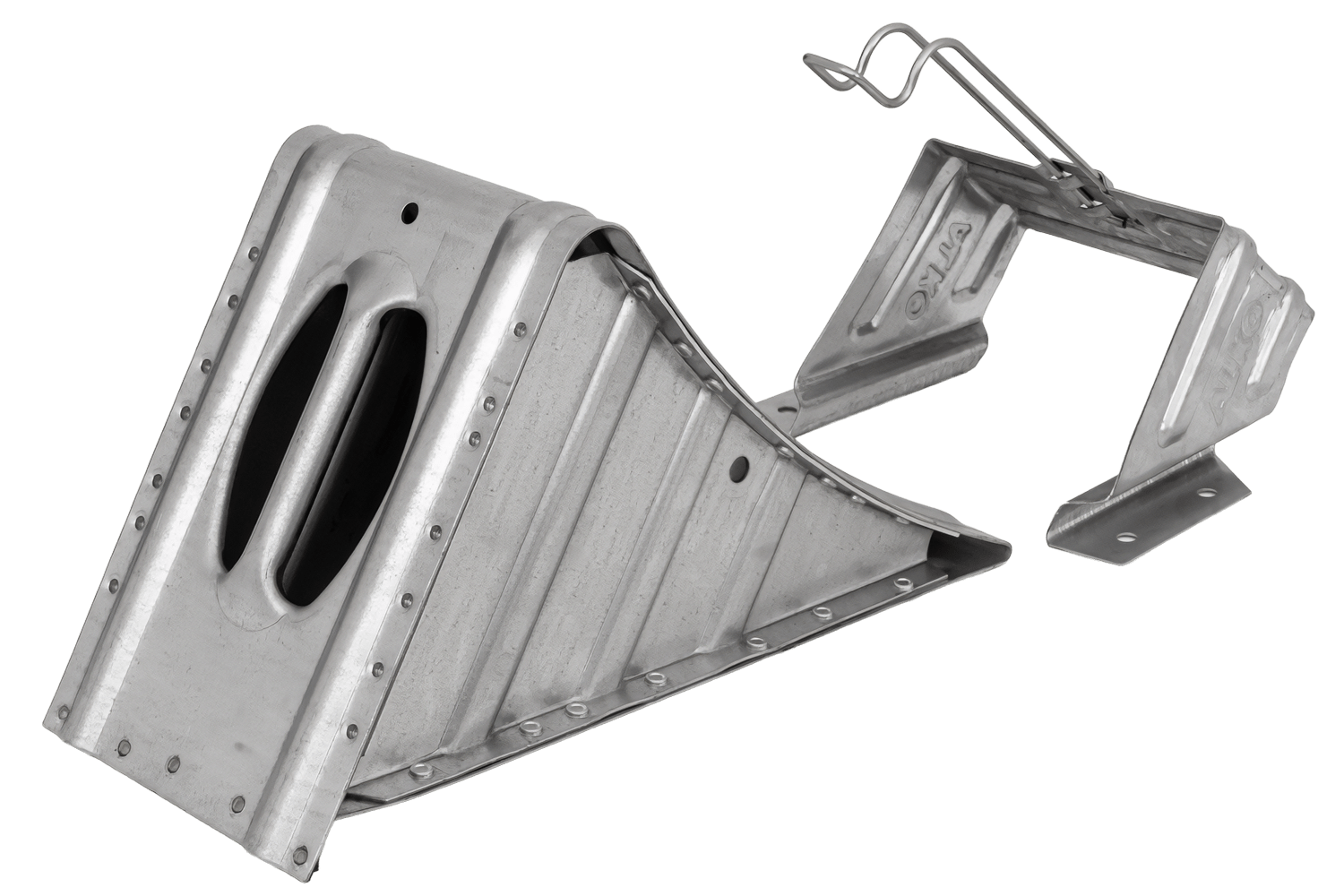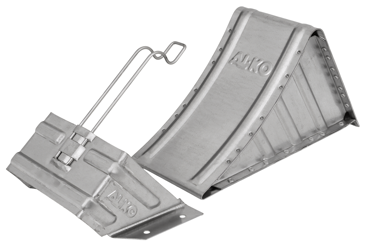 • El calzo para ruedas UK 46 con soporte de montaje AL-KO está diseñado para camiones, remolques y otros vehículos comerciales pesados. Bloquea eficazmente las ruedas, impidiendo el movimiento del vehículo y aumentando la seguridad al estacionar.