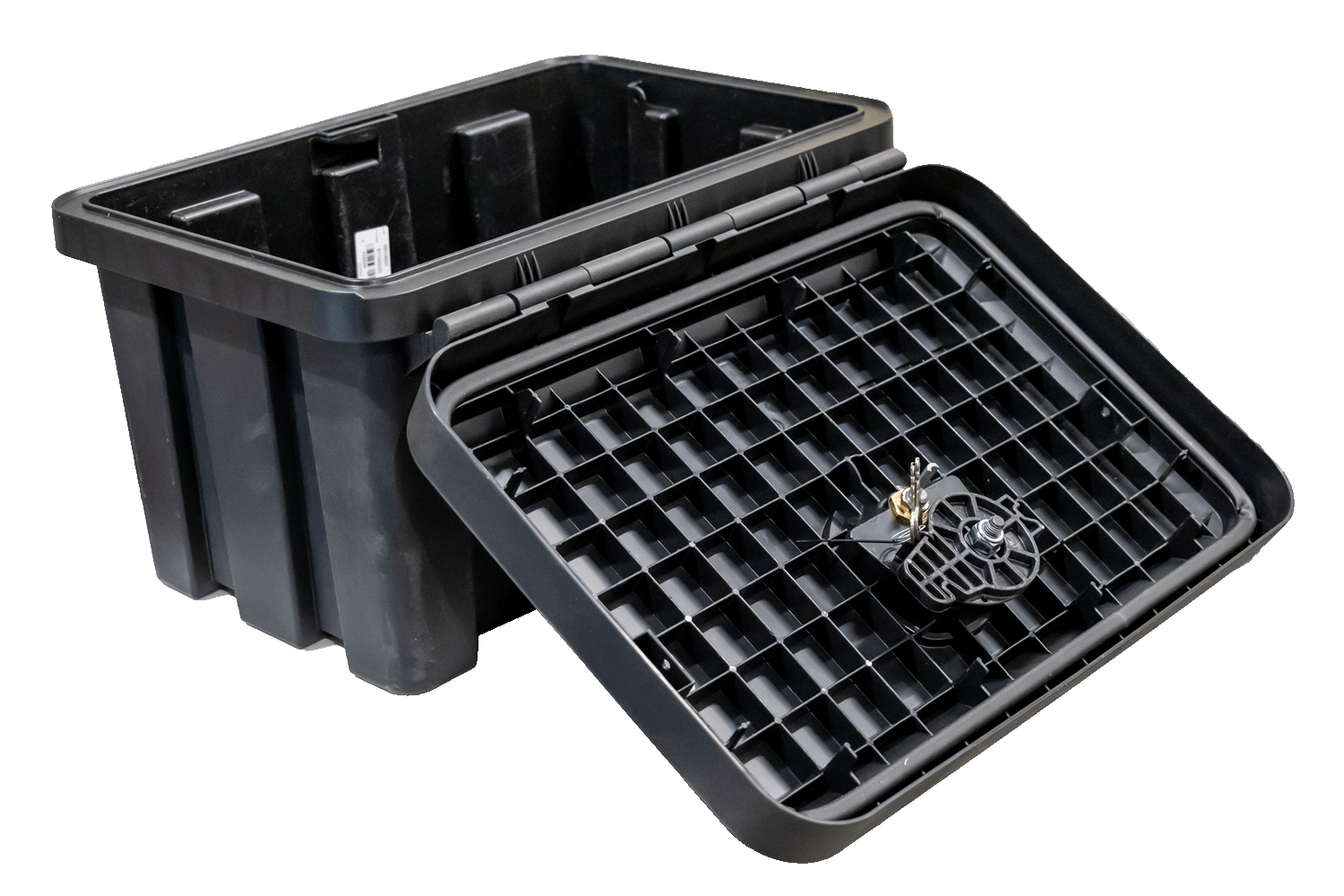 La caja está fabricada con polipropileno y nailon de alta calidad, reforzados con nervaduras para una mayor durabilidad y resistencia a daños mecánicos. Este material ofrece una protección excepcional contra incendios, agua, polvo, combustible, rayos UV y temperaturas extremas , lo que la hace ideal para un uso intensivo en condiciones adversas. La tapa de la caja está equipada con una junta de goma que garantiza una estanqueidad total, impidiendo la entrada de agua y polvo al interior . Este diseño protege eficazmente las herramientas y equipos almacenados de factores externos dañinos, lo cual es especialmente importante para un uso intensivo en obras de construcción o en condiciones climáticas adversas.