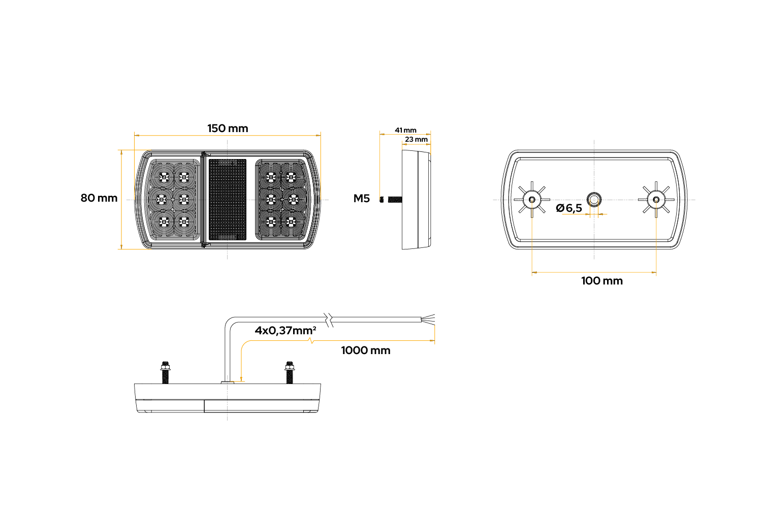 La luz trasera LED 41-139 de ASPÖCK está diseñada para instalarse tanto en el lado izquierdo como en el derecho del vehículo y tiene las siguientes dimensiones: ancho 150 mm, alto 80 mm, fondo 23 mm . Adaptado para funcionar en el rango de tensión de 12 V , se utiliza en remolques ligeros, autobuses y grúas, lo que destaca su universalidad. Equipado con un cable de 1 m, permite una instalación fácil y rápida. Gracias al uso de tecnología LED, la lámpara garantiza alta eficiencia, durabilidad y eficiencia energética, garantizando seguridad en diversas condiciones de la carretera.