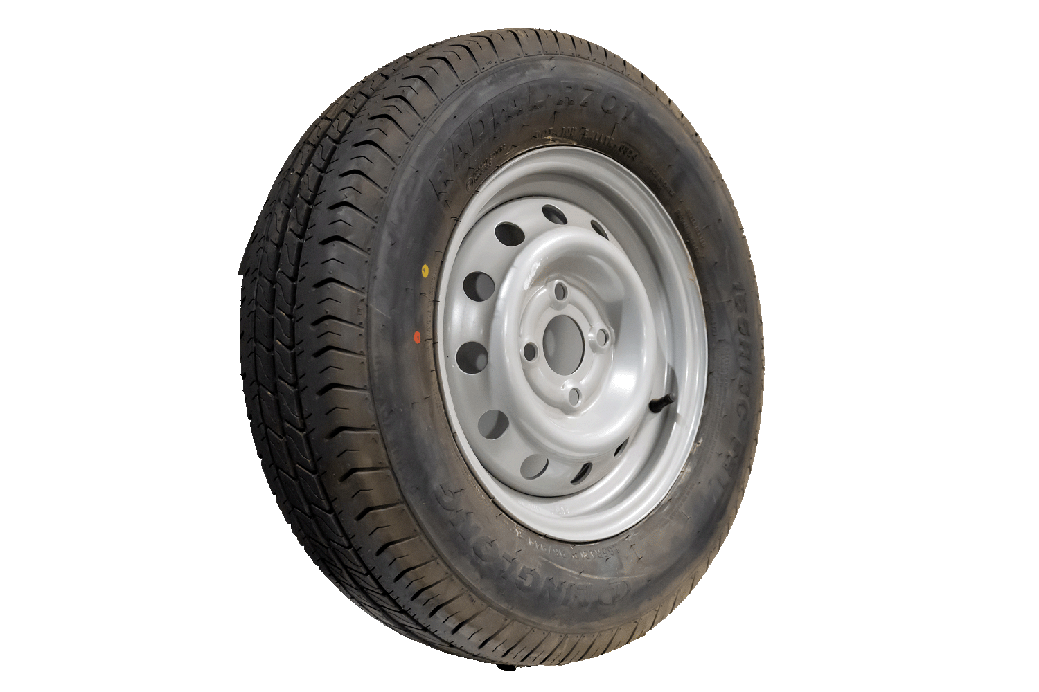• Rueda diseñada para remolques ligeros. El neumático LINGLONG 165/80 R13C garantiza seguridad y estabilidad durante la conducción. Llanta de acero UNITRAILER 4Jx13"H2 4X100 ET:30. Capacidad máxima de carga: 500 kg.