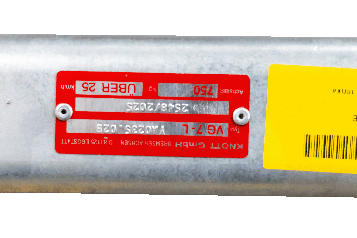 Eje sin freno KNOTT VG7-L para remolque UNITRAILER 750 kg 1260 mm 1560 mm 4x100