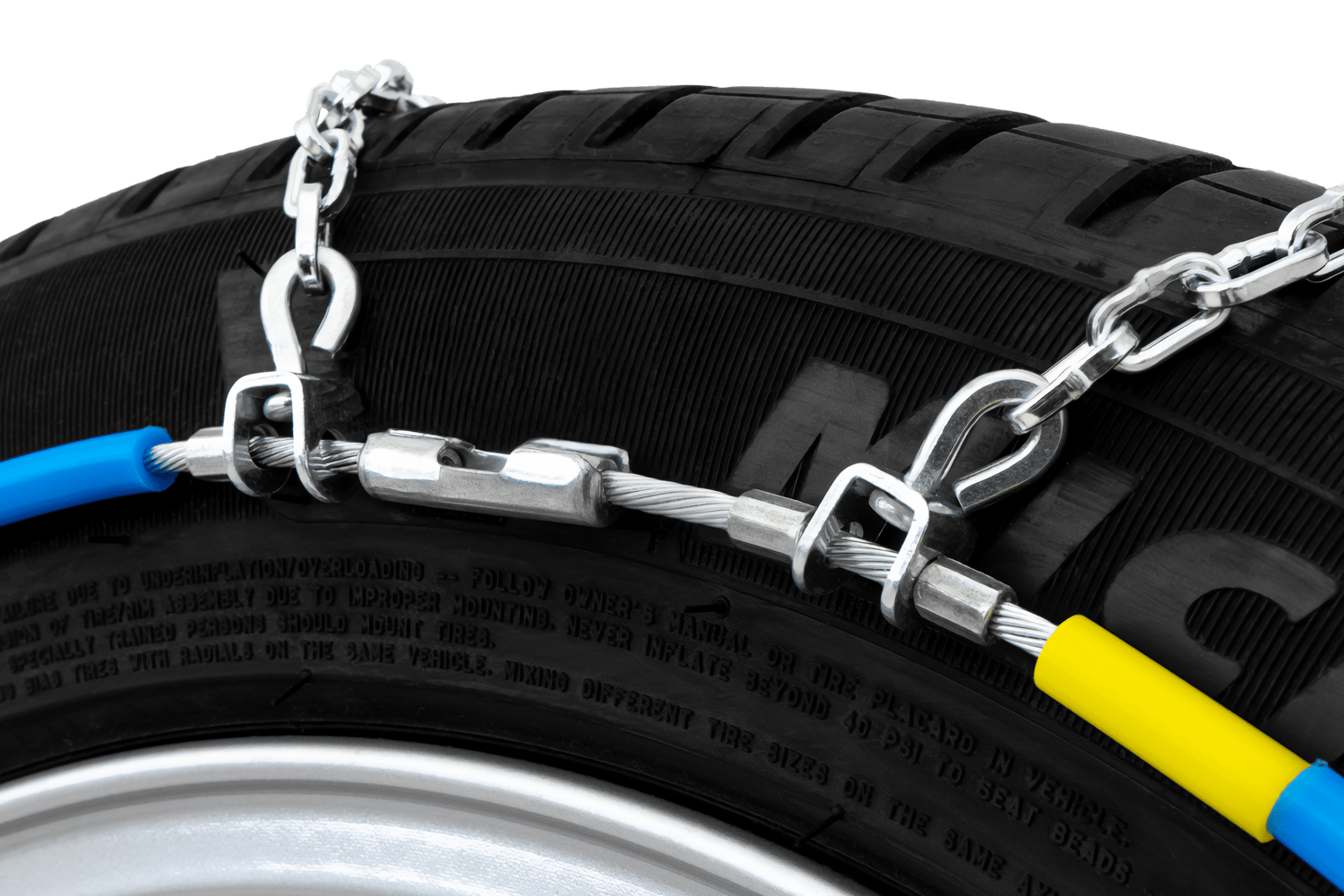 • Con las cadenas autotensables Inter Pack KNS, conquistarás cualquier ruta invernal. Su eslabón de 9 mm de grosor, el acero endurecido y el patrón de diamante garantizan la tracción, mientras que el tensor automático asegura una instalación sencilla y un a