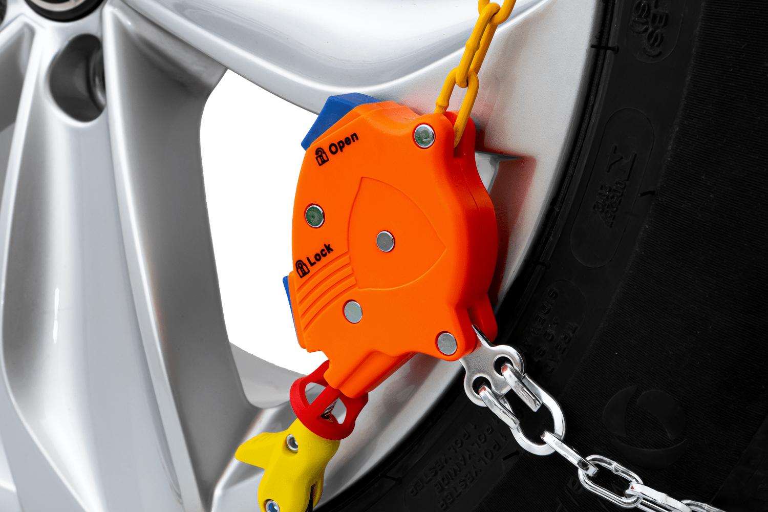 El sistema de tensado automático elimina la necesidad de detenerse para tensar las cadenas: la tensión se ajusta automáticamente durante la marcha. Esto facilita la instalación y el desmontaje, y garantiza un uso cómodo incluso en condiciones climáticas adversas.