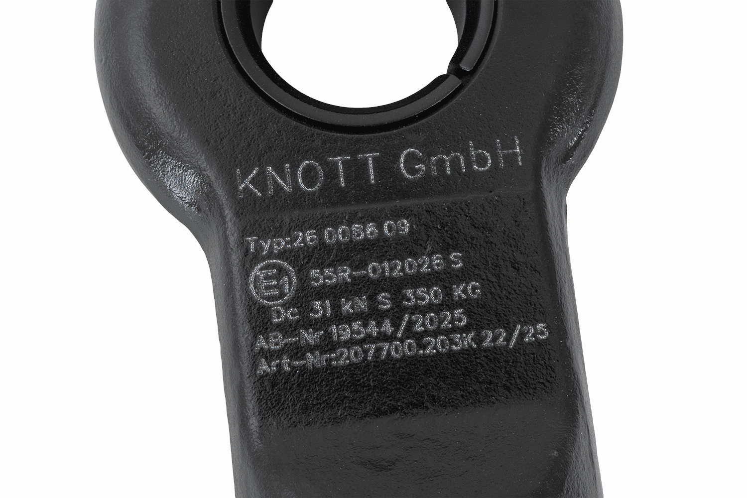 Enganche de ojo KNOTT KK7488S para remolque de 3500 kg con lanza tubular de 50 mm, nuevo modelo
