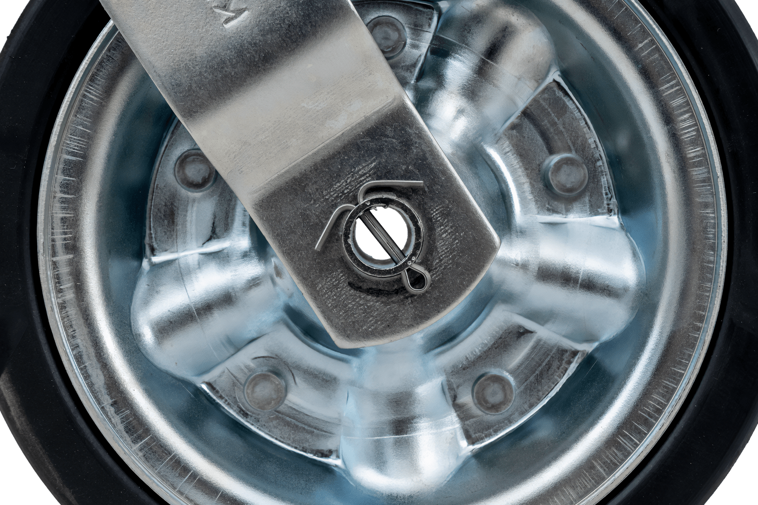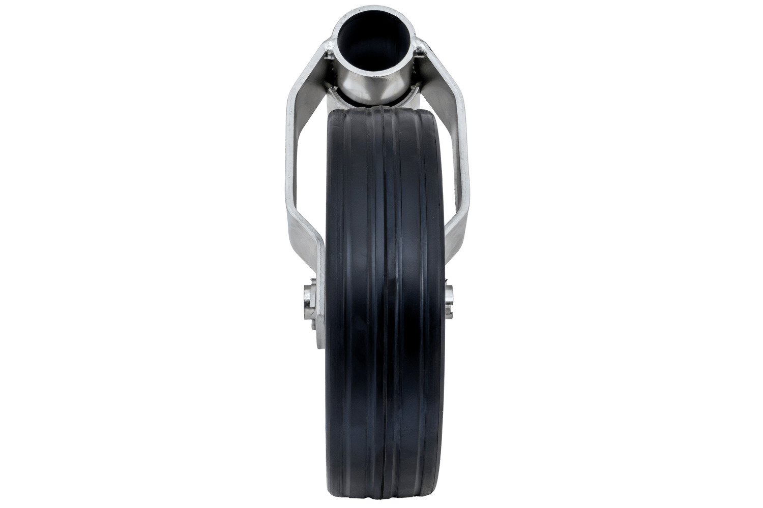 La rueda de apoyo tiene un diámetro de tubo de 60 mm y una carrera de 230 mm . El elemento está galvanizado , lo que lo protege eficazmente contra la corrosión y las inclemencias del tiempo. La rueda de caucho macizo, combinada con la llanta de acero, garantiza una rodadura fiable y una maniobrabilidad cómoda, incluso en superficies irregulares.