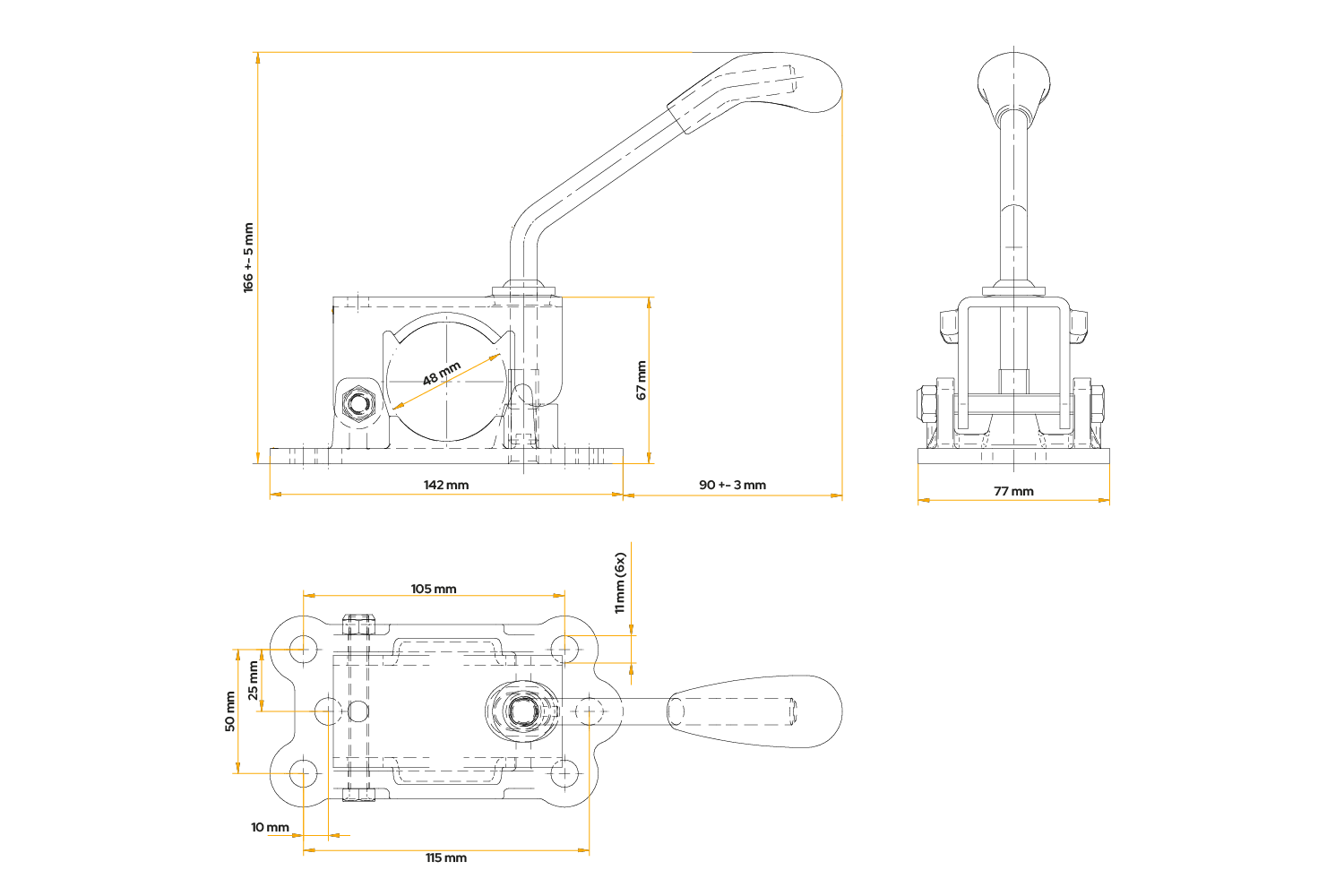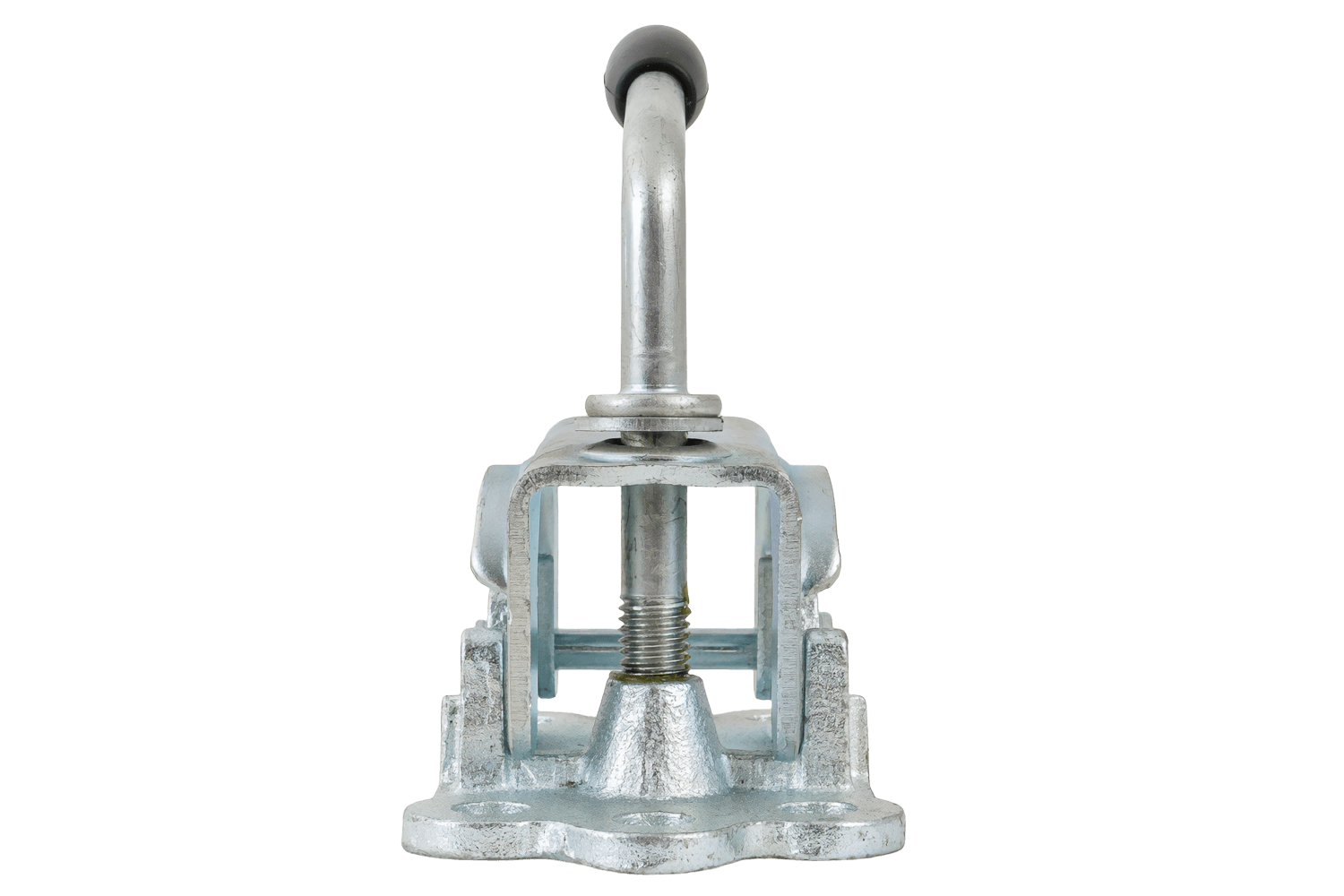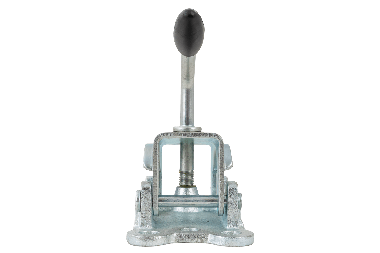 El cuerpo sólido de fundición es altamente rígido y resistente a las cargas durante las maniobras del remolque. El zincado electrogalvanizado protege el elemento de la corrosión en condiciones de funcionamiento típicas (lluvia, barro, sal para carreteras), lo que garantiza que la abrazadera mantenga su funcionalidad y estética durante mucho tiempo. La palanca ergonómica permite sujetar y desbloquear fácilmente con una sola mano.