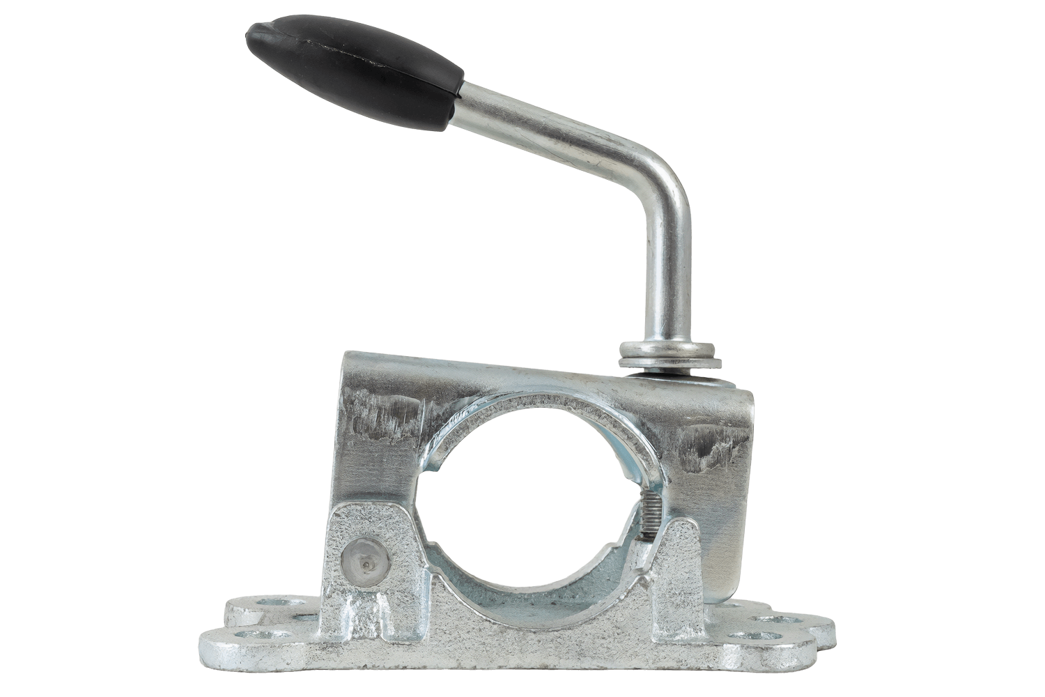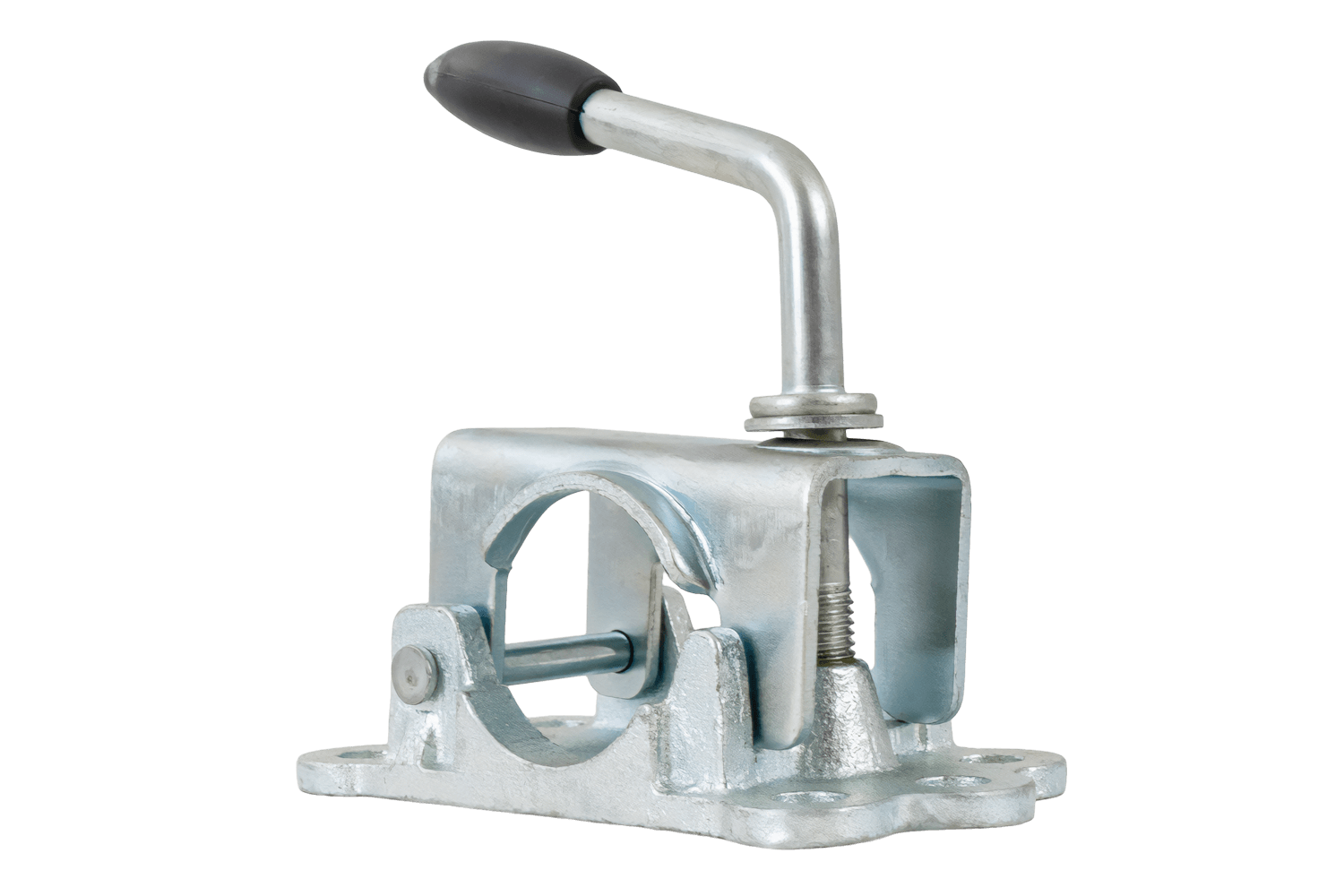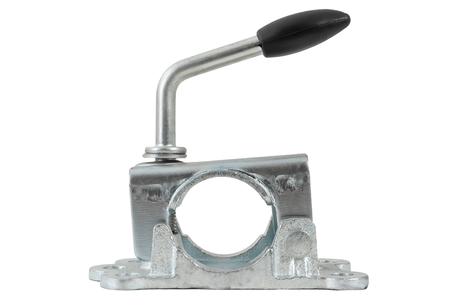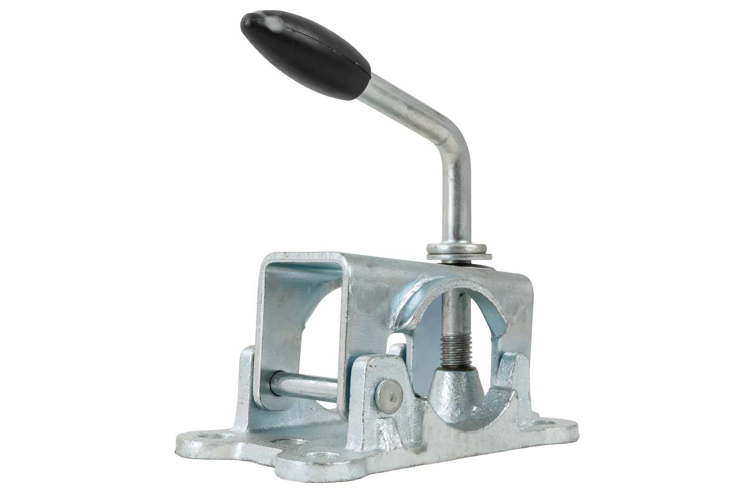 Esta abrazadera está diseñada para montar y bloquear ruedas jockey en remolques de carga, remolques para embarcaciones y caravanas. Facilita el soporte de la barra de tiro , la conexión y desconexión rápida del remolque y su maniobra manual en el patio, la entrada o el taller. Es una forma sencilla de colocar el remolque de forma segura al estacionar y ajustar cómodamente la altura del enganche . Por seguridad, compruebe la presión de la palanca y el estado del tubo de la rueda jockey antes de cada uso.
