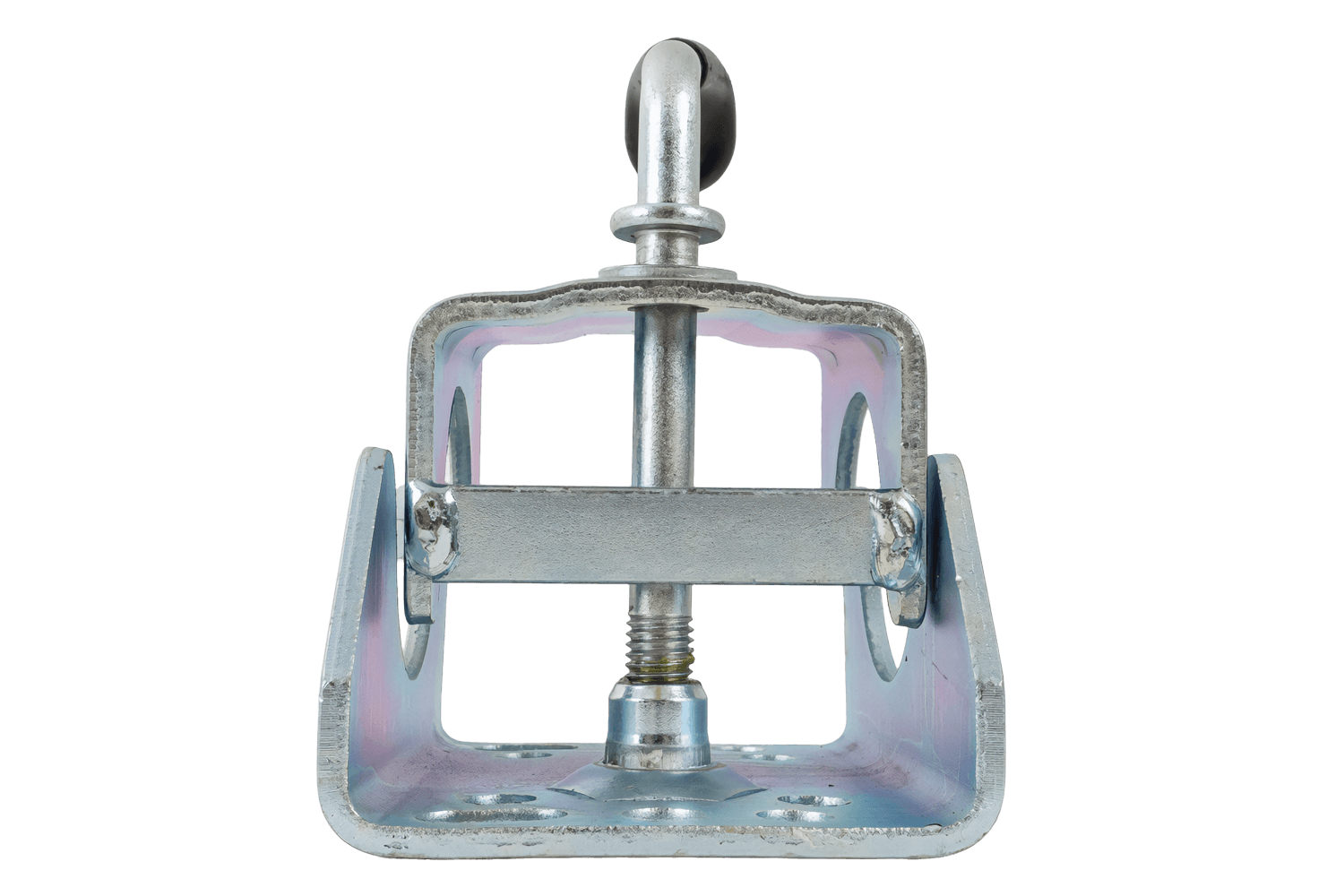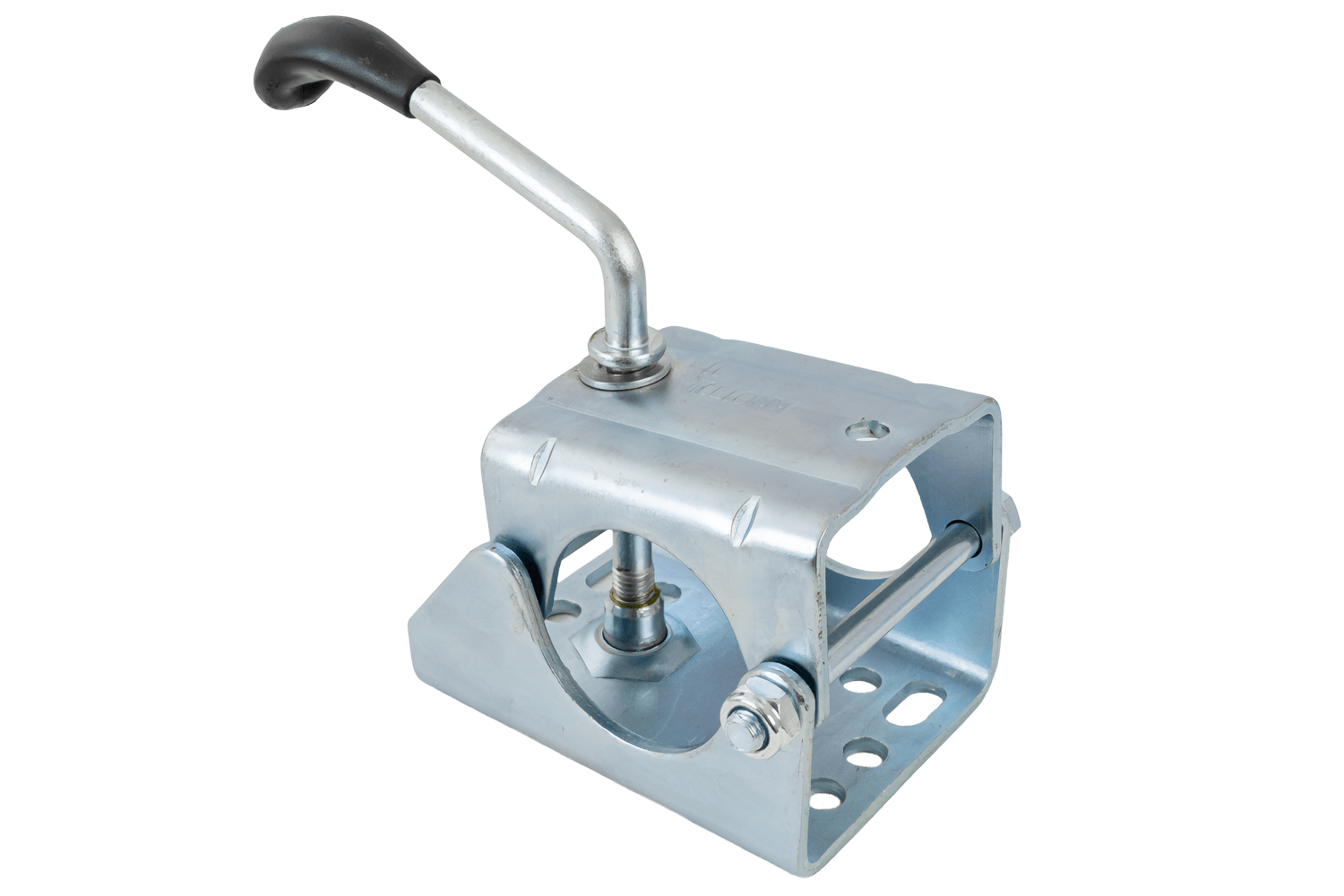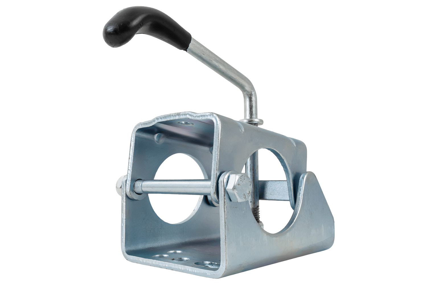 Una rueda jockey con abrazadera se utiliza para sujetar y maniobrar cómodamente la barra de tiro del remolque fuera del vehículo: facilita el acoplamiento/desacoplamiento , la nivelación y el ajuste manual sin riesgo de caída del remolque ni de daños en el enganche. La abrazadera fija la rueda jockey al bastidor/soporte, lo que permite ajustar rápidamente la altura y la posición, o incluso desmontarla por completo. Es una solución ideal para remolques de carga, remolques para embarcaciones y caravanas.