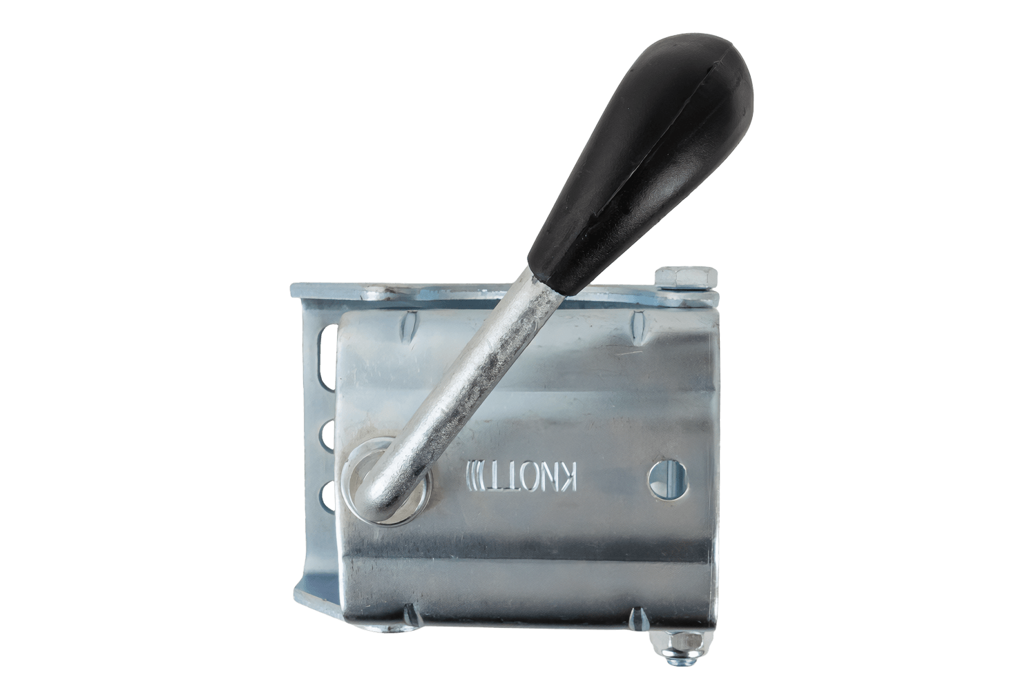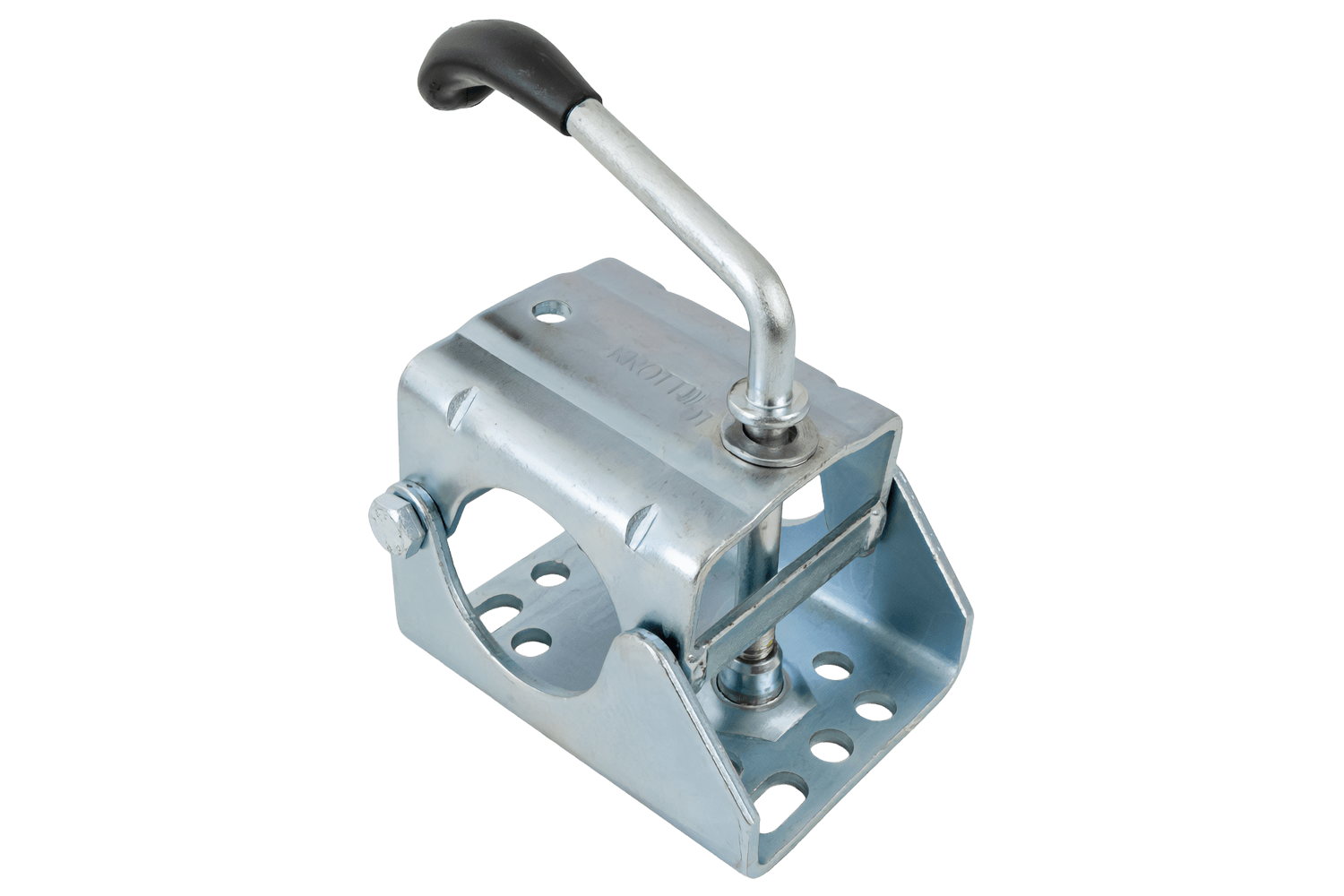 La abrazadera para rueda jockey 4802879X de KNOTT se utiliza para montar ruedas jockey con un tubo de 60 mm de diámetro . La base tiene orificios de montaje con una separación de 105 x 50 mm. mm y 70x50 y 11 mm de diámetro Permite fijar rápidamente el soporte al bastidor o al soporte de la barra de tiro. La palanca de presión garantiza un agarre seguro en el tubo, reduce el deslizamiento y la vibración, y permite ajustar rápidamente la altura de la rueda o desmontarla por completo para su transporte o mantenimiento .