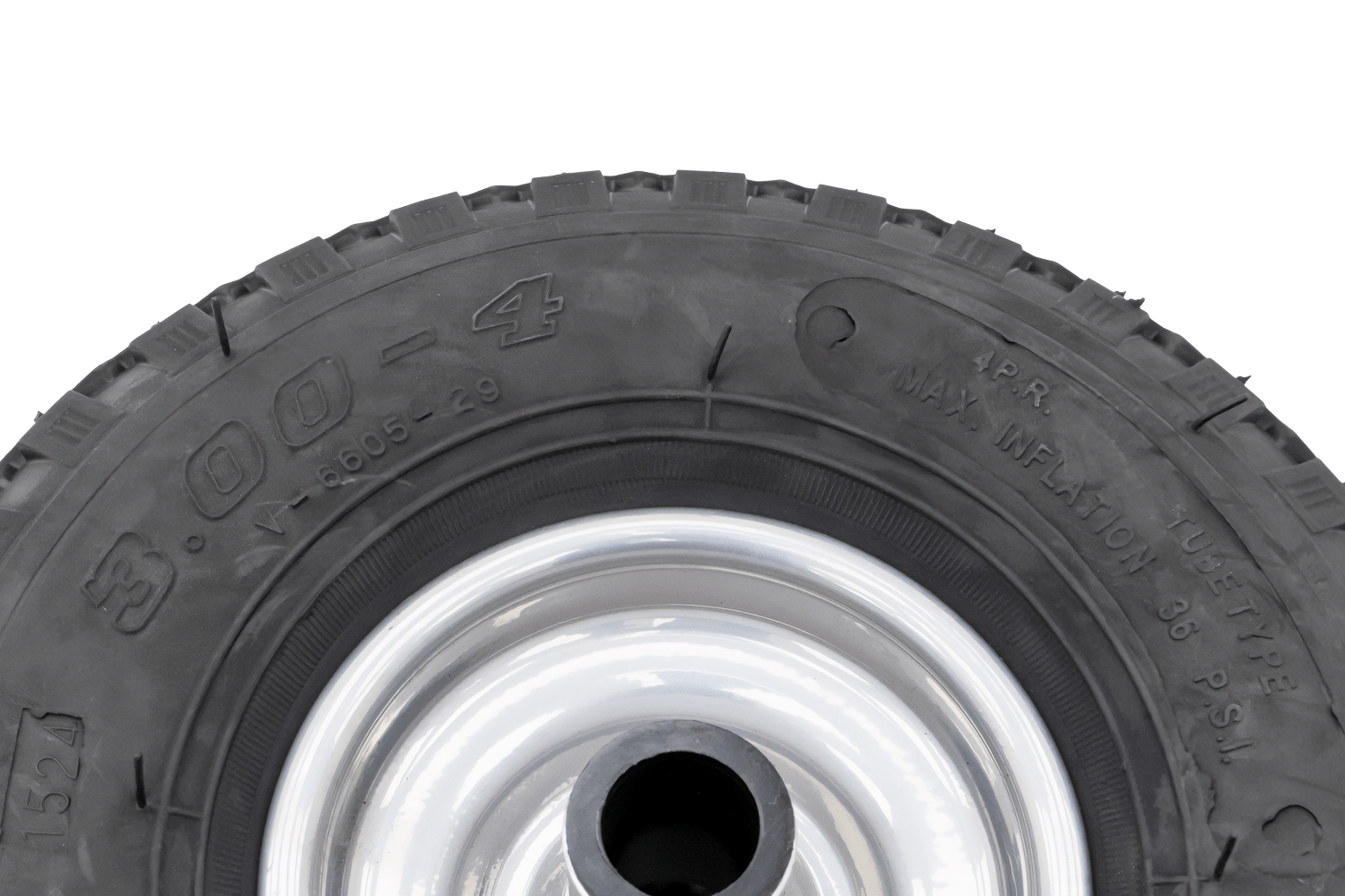 Una rueda jockey se utiliza para sujetar la barra de tiro y maniobrar manualmente el remolque fuera del vehículo: al acoplar, desacoplar, detener el remolque o maniobrar en espacios reducidos. Vale la pena considerar una rueda neumática cuando se necesita una mejor amortiguación de las vibraciones y una rodadura más fácil en superficies irregulares (adoquines, grava).