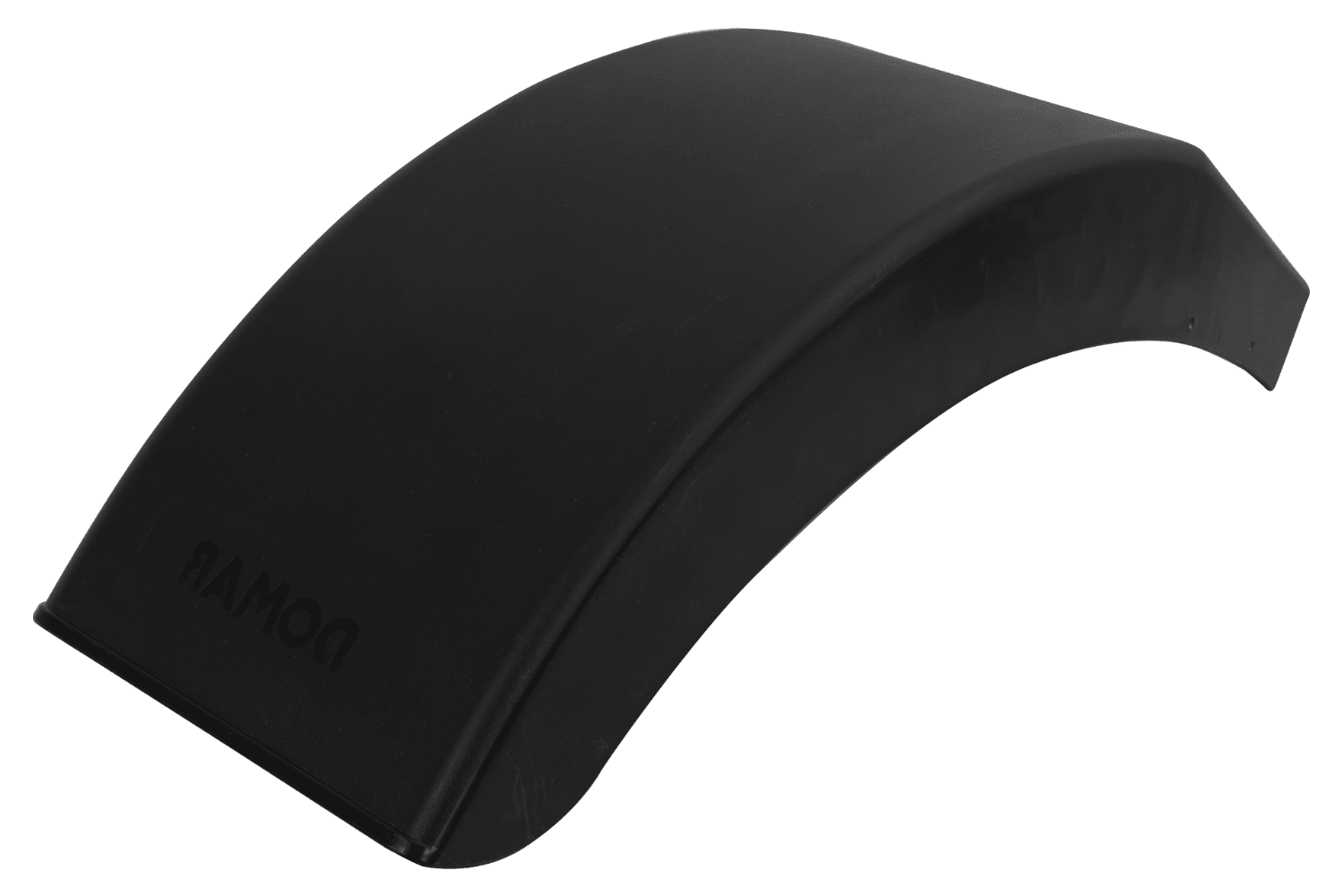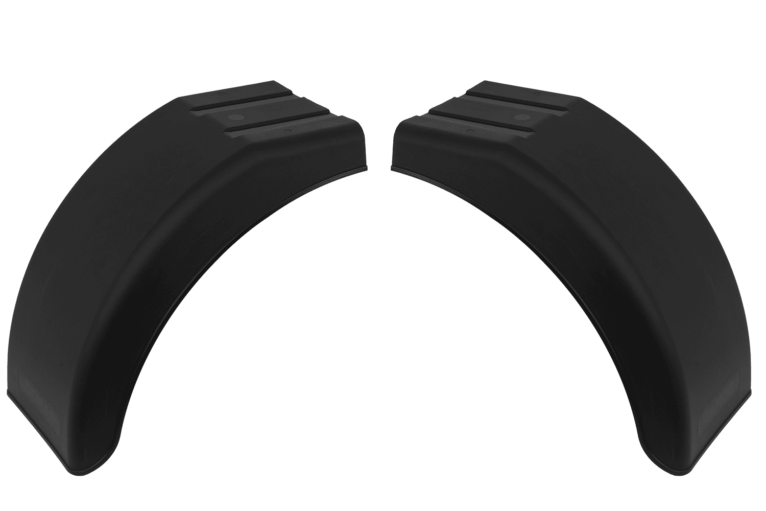• Un juego de dos guardabarros de media caña, izquierdo y derecho, de DOMAR, cada uno de 395 mm de largo y 220 mm de ancho. Protegen el remolque y la carga de daños mecánicos y a otros usuarios de la vía de las salpicaduras de barro y piedras.