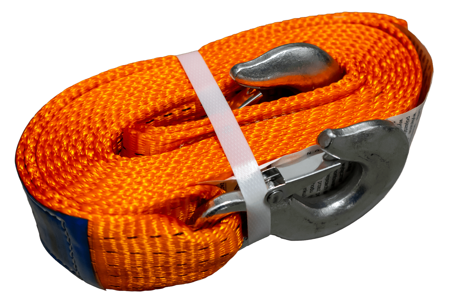 Cuerda de remolque UNITRAILER con ganchos, correa de remolque de 4,5 m/50 mm/5 t, color naranja