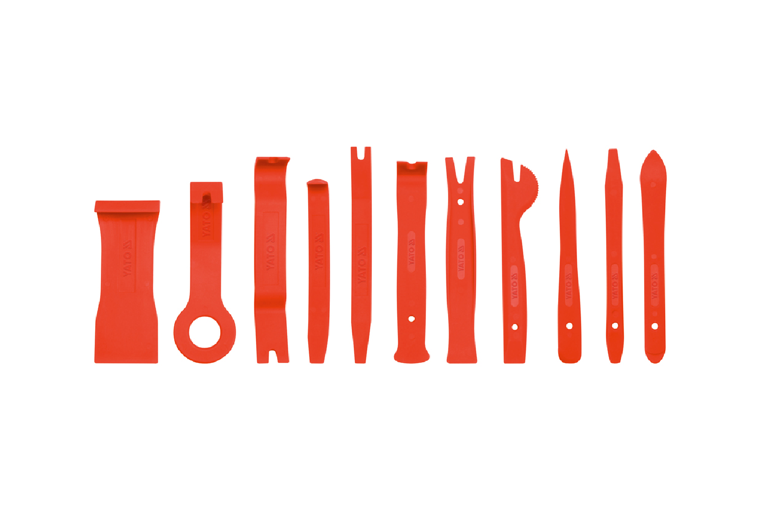Las herramientas son resistentes a arañazos e impactos , lo que garantiza su durabilidad incluso con un uso intensivo. Su diseño las hace ideales para retirar molduras, clips, fijaciones de plástico, consolas centrales, paneles de puertas y componentes del sistema multimedia . Minimizan el riesgo de dañar la tapicería y los componentes interiores, lo que las hace indispensables en cualquier taller, servicio de audio, detallado y entusiasta del automóvil.