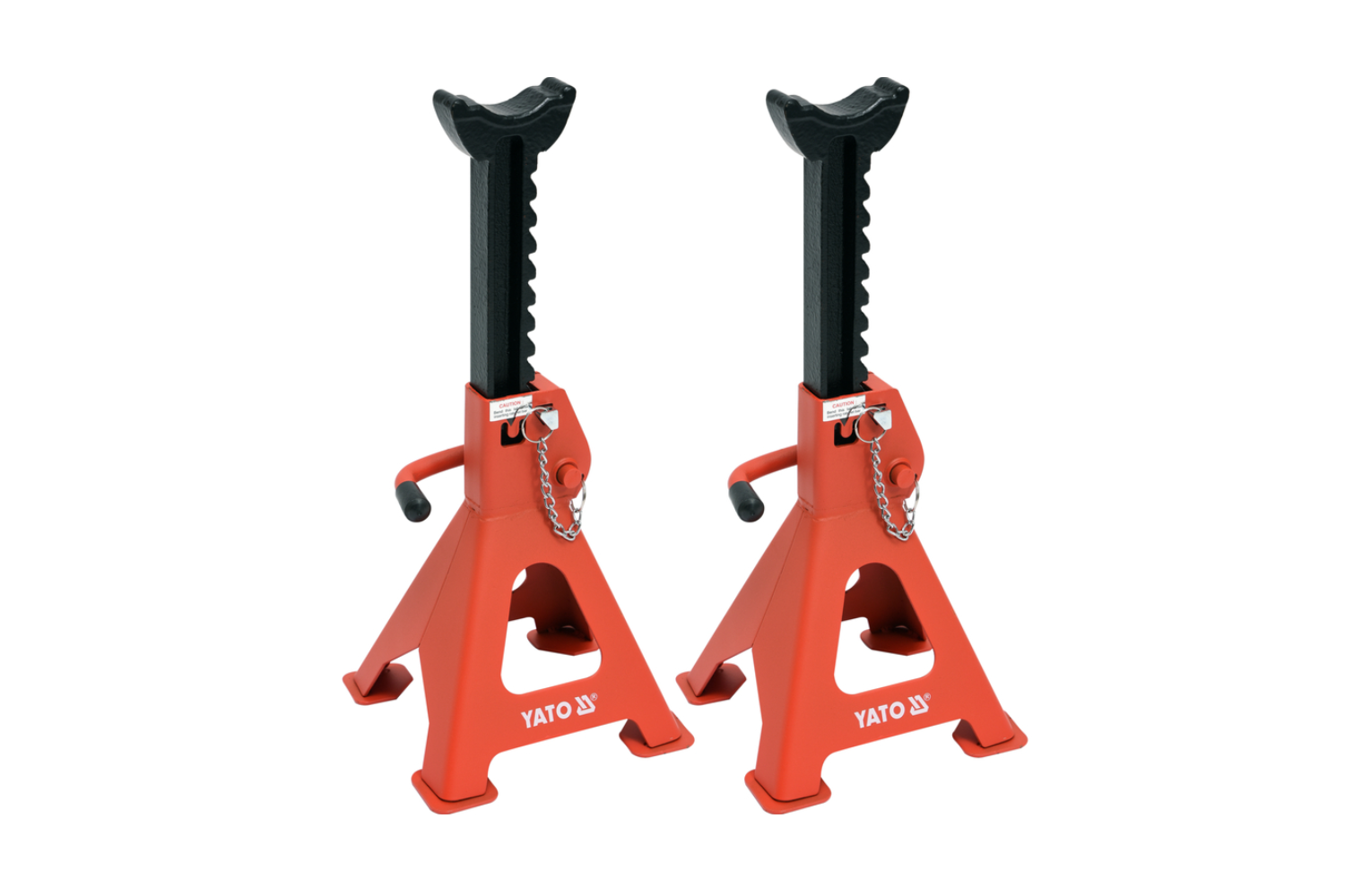 Los gatos para coche YT-17311 (3T, 2 uds.) de YATO son gatos de trinquete duraderos que proporcionan un soporte estable y seguro para el vehículo durante las tareas de mantenimiento. Su amplia base de 201 x 182 mm , cuatro patas robustas y un cabezal de 85 x 29 mm garantizan un soporte seguro y estable para el vehículo. La capacidad de elevación de 3 toneladas por par de soportes permite operar la mayoría de los turismos y vehículos comerciales ligeros, mientras que un revestimiento anticorrosivo y una cuña de seguridad adicional mejoran la seguridad y la durabilidad.