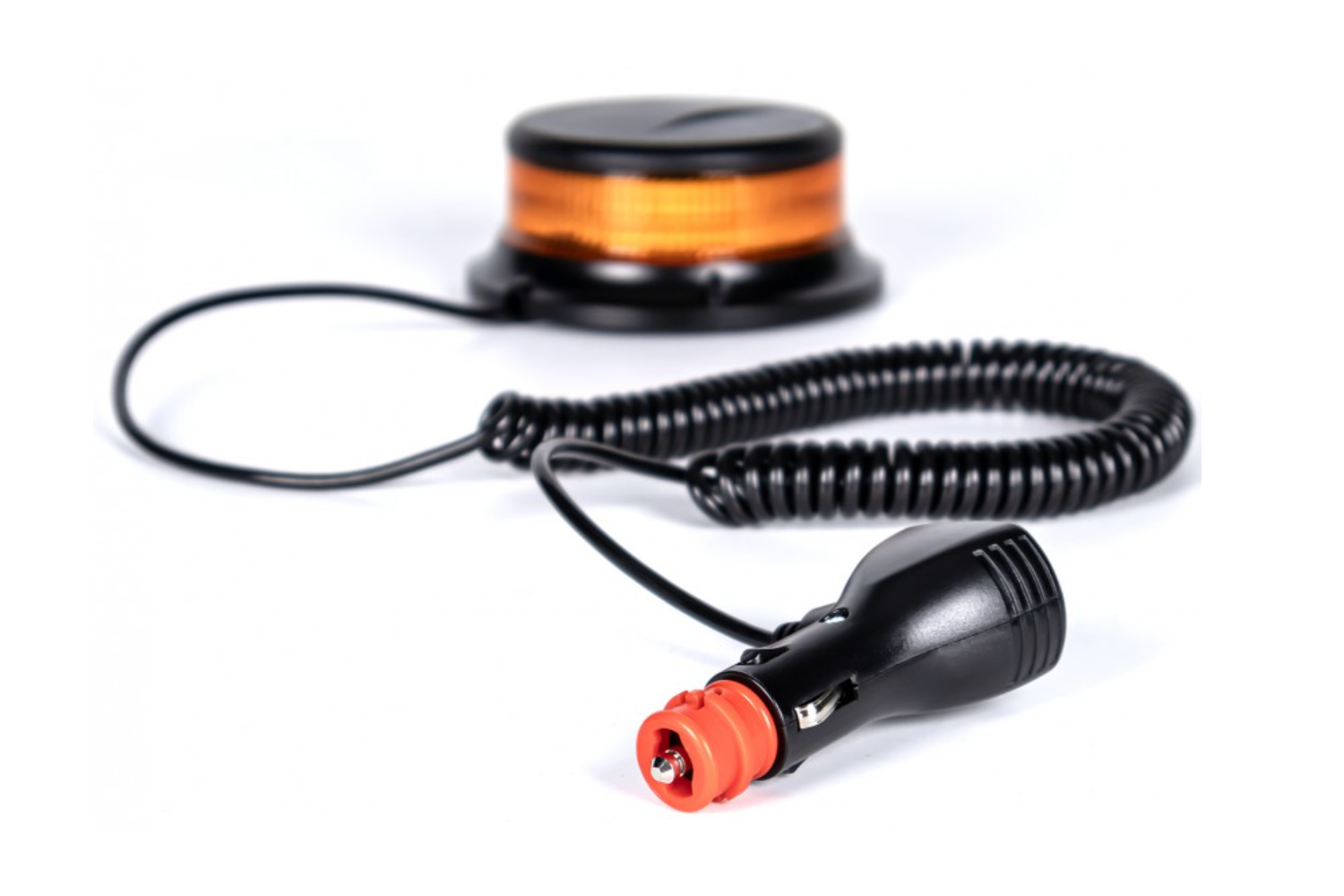 La lámpara mide 112 mm de ancho y 46 mm de alto , funciona con 12/24 V y ofrece tres modos de destello : simple, doble y cuádruple. Emite luz naranja y tiene una potencia de 27 W. Un soporte magnético garantiza una instalación rápida, mientras que un cable en espiral de 3 m con enchufe para encendedor facilita la conexión. El dispositivo también cuenta con protección contra polaridad inversa para mayor seguridad operativa.