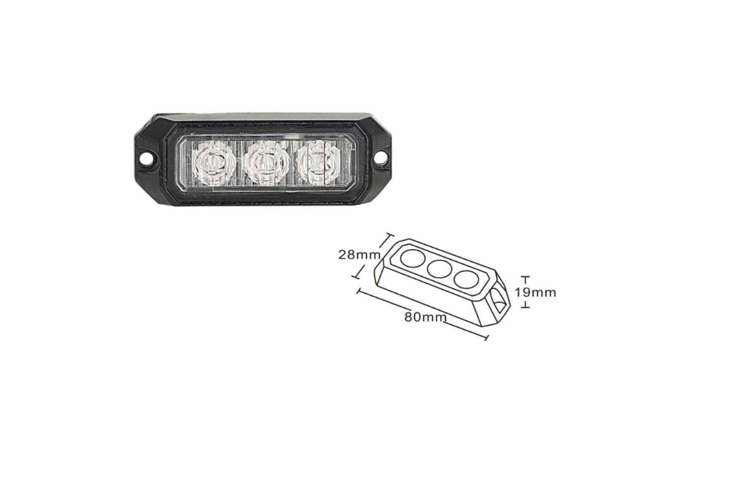 La lámpara tiene dimensiones: 80 milímetros Con 28 mm de ancho, 19 mm de alto y 12 mm de profundidad , funciona con 12/24 V y ofrece dos modos de flash : simple y doble. Su potencia de 9 W y su cable de 200 mm garantizan una fácil instalación y una alta eficiencia operativa. Su bajo consumo y su diseño robusto la convierten en una solución fiable para aplicaciones profesionales.
