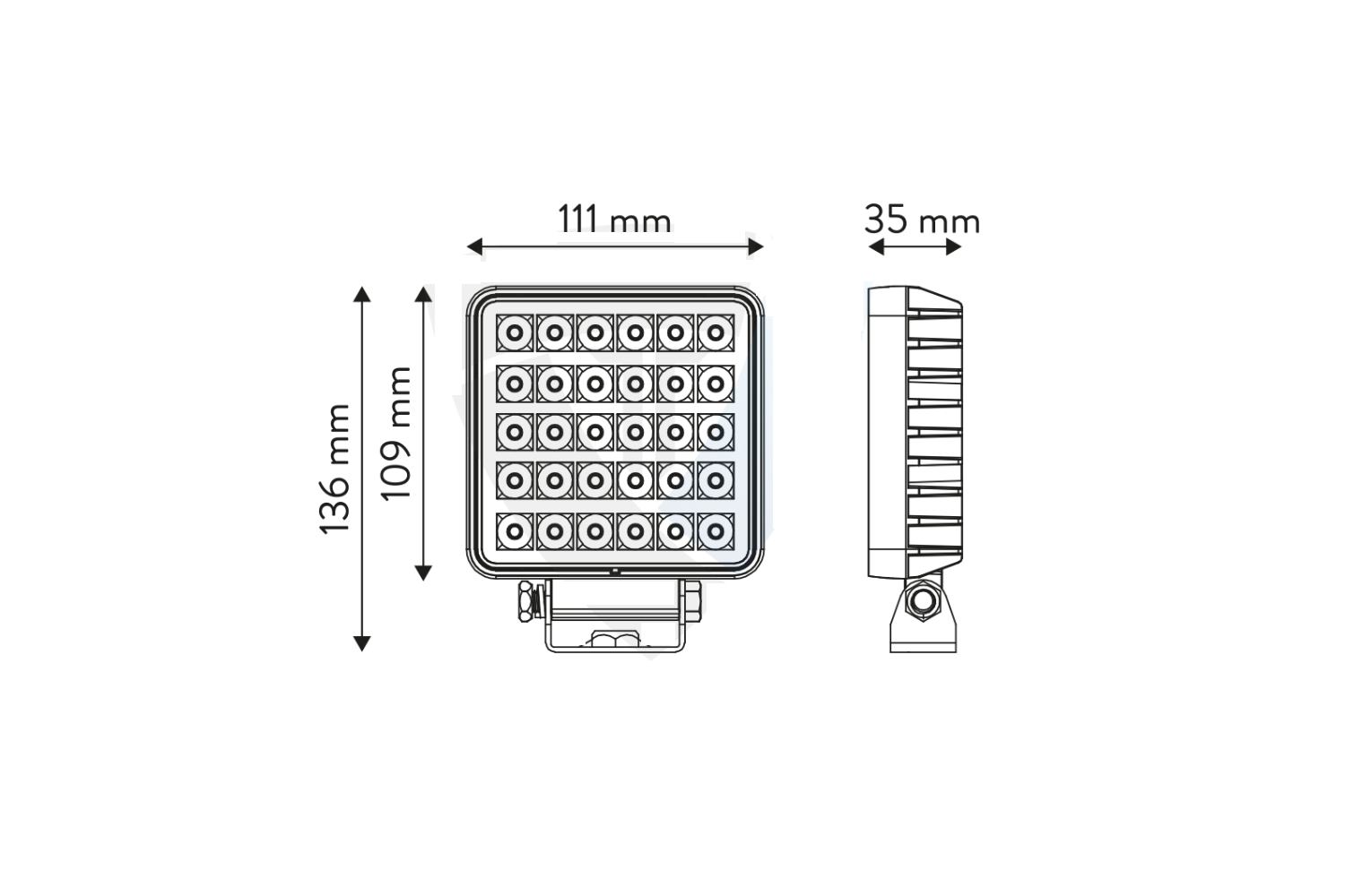 La lámpara está equipada con 30 LED OSRAM, cada uno con una potencia de 30 W y una luminosidad de 2400 lúmenes . Emite una luz blanca neutra con una temperatura de 5700 K , lo que proporciona una excelente visibilidad nocturna y al trabajar en condiciones de poca luz. La lente difusa ilumina uniformemente el área de trabajo y el interruptor trasero facilita un control rápido y cómodo de la lámpara, lo que la hace ideal tanto para trabajos de precisión como para la iluminación de áreas extensas.