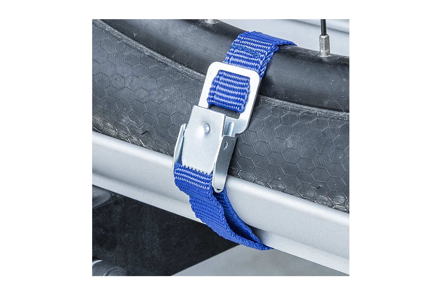 Este producto permite una fijación rápida y cómoda del cuadro o las ruedas, minimizando el riesgo de que las bicicletas se desplacen durante la conducción. Las correas están diseñadas únicamente para sujetar la carga y no deben utilizarse para levantarla ni transportarla.