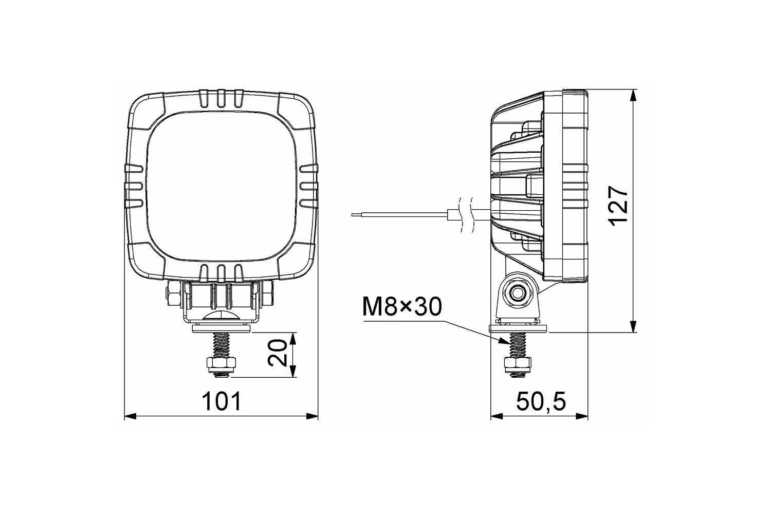 La lámpara está equipada con un soporte de montaje que permite una instalación estable, incluso en lugares de difícil acceso. El soporte inclinable permite ajustar el ángulo, lo que facilita una dirección de luz precisa. Es adecuada para vehículos como vehículos especializados, maquinaria agrícola y maquinaria de construcción .