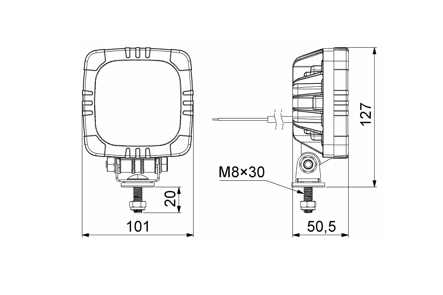 El faro delantero LED LZD 2805 de la serie ROCA, diseñado para su montaje tanto en el lado izquierdo como en el derecho del vehículo , mide 101 mm de ancho, 127 mm de alto y 50,5 mm de profundidad . Diseñado para funcionar con un voltaje de 12 a 24 V , cuenta con un cable de 1 m de longitud y una sección transversal de 4 x 0,5 mm² para una instalación rápida y sencilla. Gracias a la tecnología LED, ofrece alto rendimiento, durabilidad y eficiencia energética, garantizando la seguridad en diversas condiciones de la carretera.