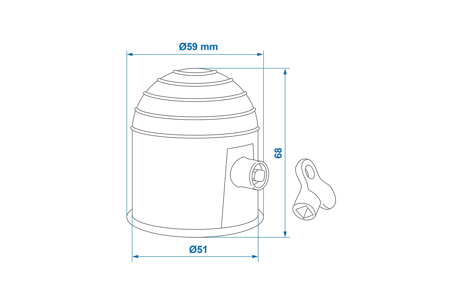 - Dimensiones: Ø 59 mm, altura 68 mm