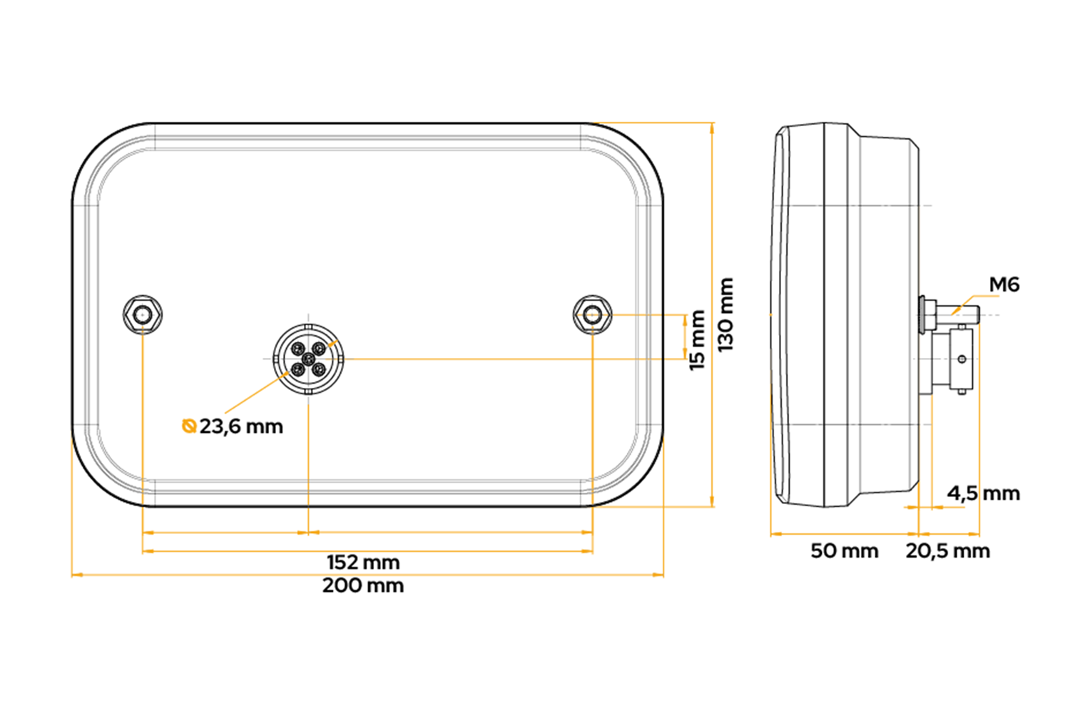 La luz trasera LED FT-270 de FRISTOM, diseñada para su montaje en el lado derecho del vehículo , se caracteriza por las siguientes dimensiones: ancho 200 mm, alto 130 mm, profundidad 50 mm . Diseñado para operar dentro de un rango de voltaje de 12 V , puede ser utilizado en remolques ligeros, autobuses y trailers, lo que resalta su universalidad. Equipado con un conector de bayoneta de 5 pines , permite una instalación fácil y rápida. Gracias al uso de tecnología LED, la lámpara proporciona un alto rendimiento, durabilidad y eficiencia energética, garantizando la seguridad en diversas condiciones de la carretera. La construcción de la lámpara es hermética , resistente a golpes y daños mecánicos, y además cuenta con protección eléctrica contra polaridad inversa, lo que aumenta adicionalmente su confiabilidad en condiciones de funcionamiento difíciles .