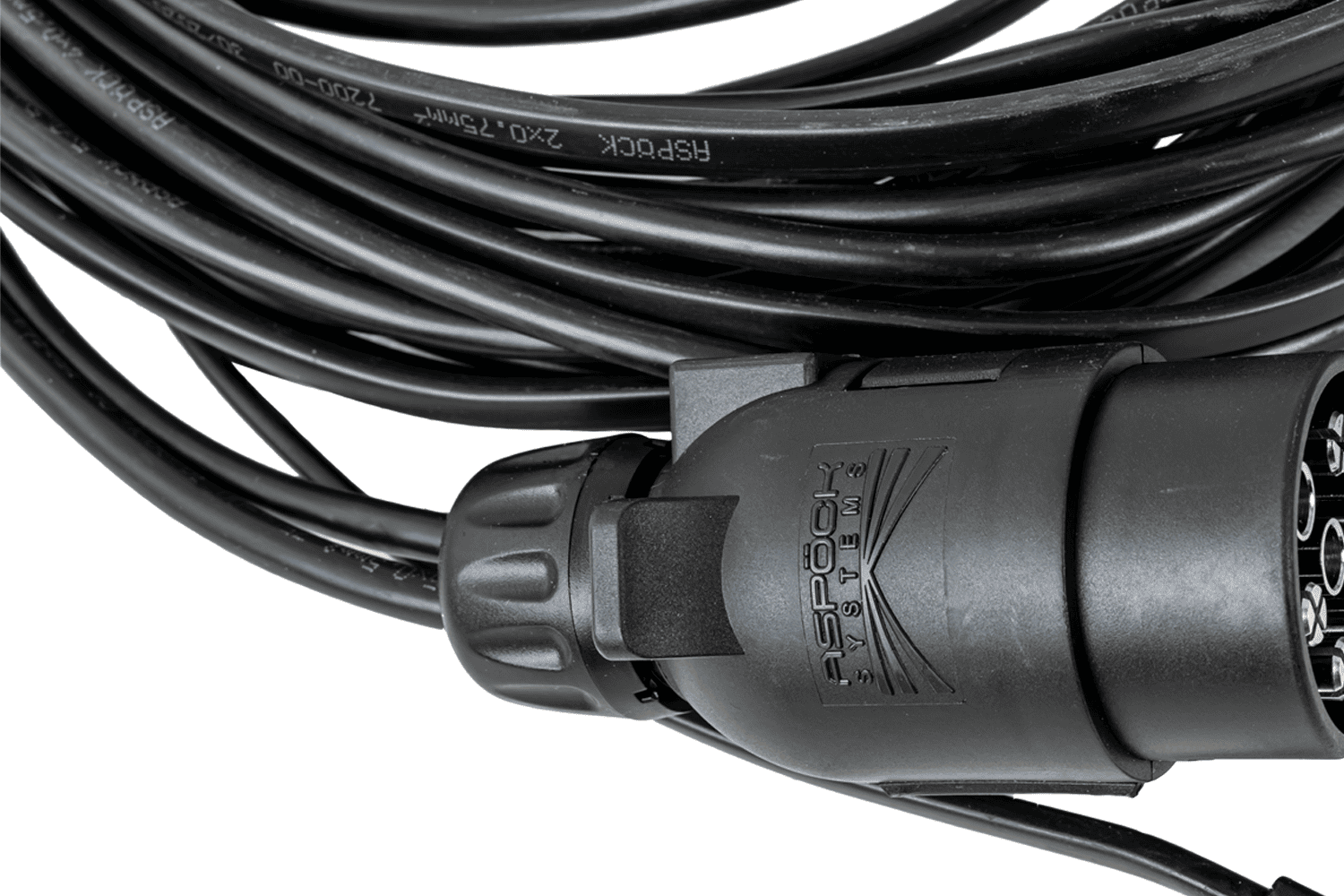 La instalación eléctrica ASPÖCK es una solución práctica y fiable para remolques de automóviles. El cable principal de 4,5 metros de largo y 0,75 mm² está equipado con un enchufe estándar de 7 PIN , lo que garantiza una compatibilidad universal con la mayoría de los vehículos.