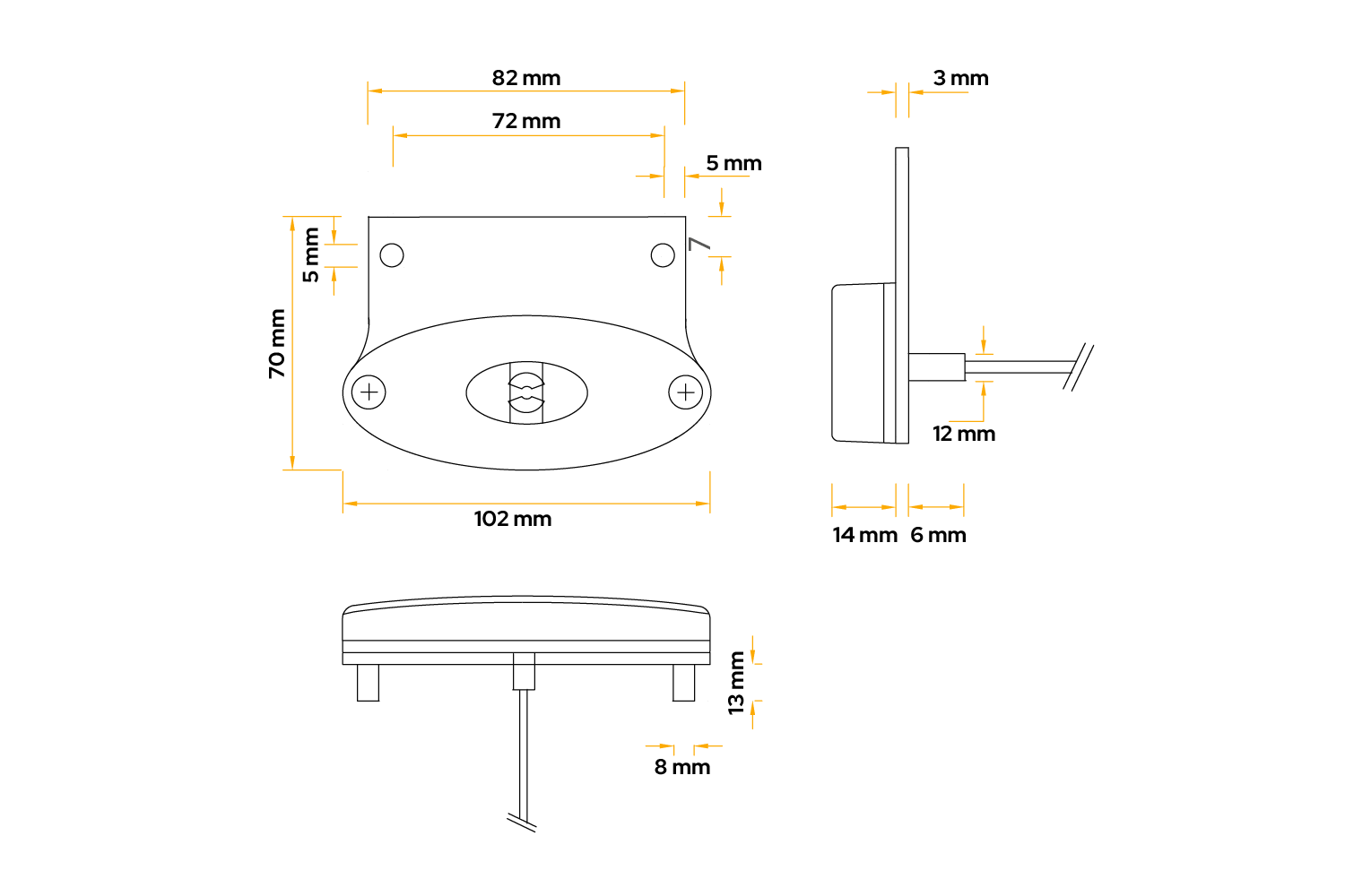 La luz de posición LED FLATPOINT II de ASPÖCK, diseñada para su montaje tanto en el lado izquierdo como en el derecho del vehículo , se caracteriza por las siguientes dimensiones: ancho 102 mm, alto 70 mm, profundidad 14 mm . Diseñado para funcionar a un voltaje de 12 V , puede utilizarse en vehículos de reparto, remolques, semirremolques y autocaravanas. Equipado con un soporte de montaje plano y un cable plano de 0,5 m , permite una instalación fácil y rápida. Gracias al uso de la tecnología LED La lámpara proporciona alto rendimiento, durabilidad y eficiencia energética, garantizando la seguridad en diversas condiciones de la carretera.