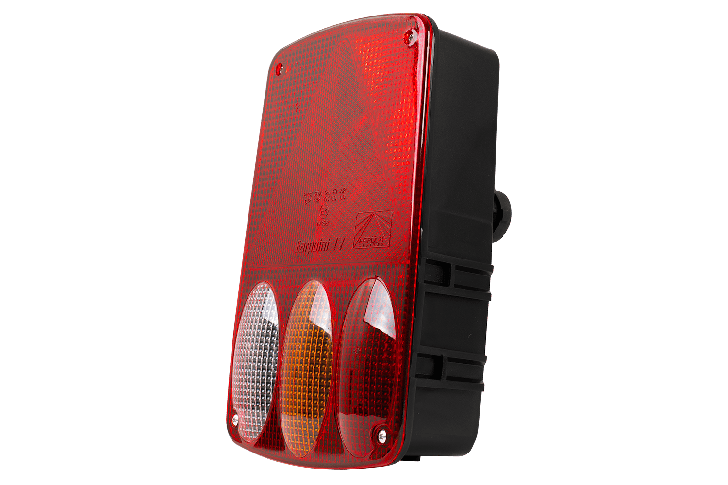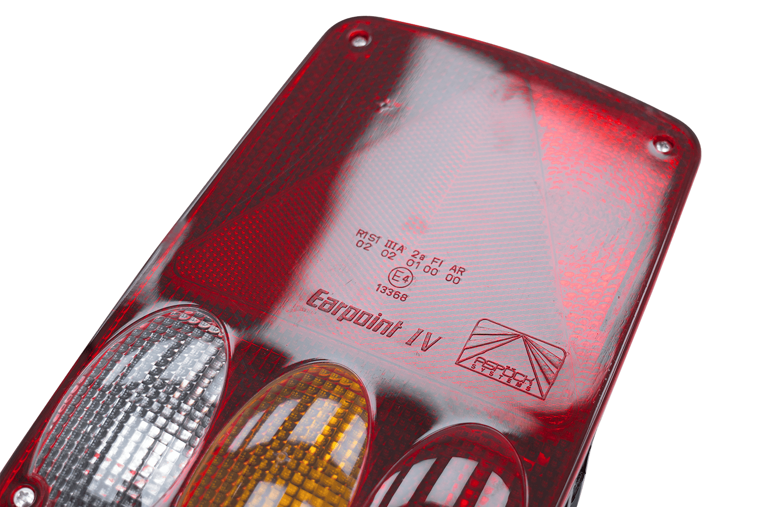 • Piloto trasero Earpoint IV ASPÖCK para instalación en el lado izquierdo. Ofrece seis funciones: luz de posición, luz de freno, luz antiniebla, luz de marcha atrás, intermitente y reflector. Perfecto para uso en remolques, camiones y maquinaria agrícola.