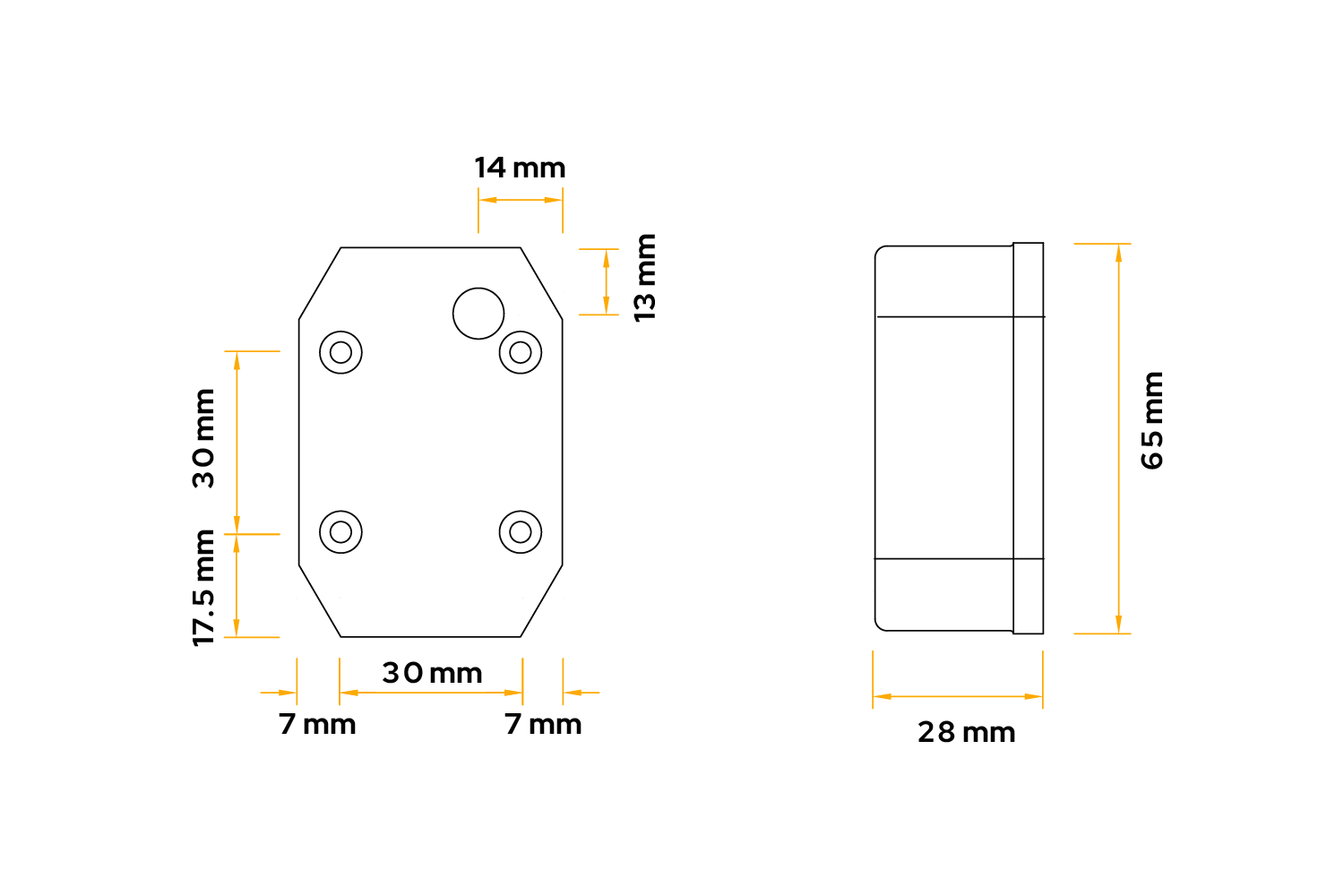 La luz de posición FLEXIPOINT I de ASPÖCK, diseñada para su montaje tanto en el lado izquierdo como en el derecho del vehículo , se caracteriza por las siguientes dimensiones: ancho 44 mm, alto 65 mm, profundidad 28 mm . Equipado con un cable plano de 0,5 m , permite una instalación fácil y rápida y puede utilizarse en vehículos de reparto, remolques, semirremolques y autocaravanas .