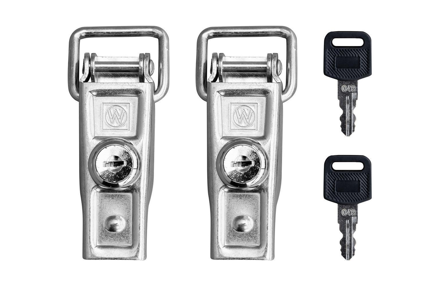 Juego de ganchos laterales con fijaciones WINTERHOFF BVS 60-1 + BVSG 60-A, cerradura lateral completa para remolque con llave