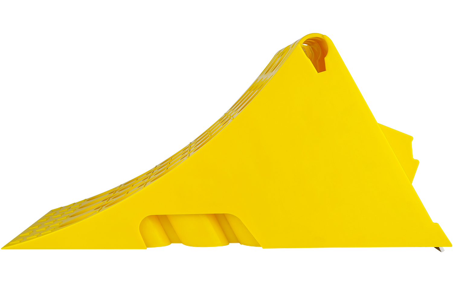 Fabricada en plástico resistente y ligero, la cuña es significativamente más ligera que las cuñas metálicas tradicionales , lo que facilita su manejo y transporte. Una placa de refuerzo de acero integrada en la parte inferior evita que la cuña se desplace durante el uso, lo que aumenta su eficacia y seguridad. El producto cumple con los requisitos de la norma DIN 76051-1 (11/1992) , que especifica las normas técnicas para cuñas utilizadas en vehículos comerciales. Gracias a su robusta construcción y su perfil refinado, la cuña garantiza una inmovilización fiable del vehículo incluso en terrenos difíciles.