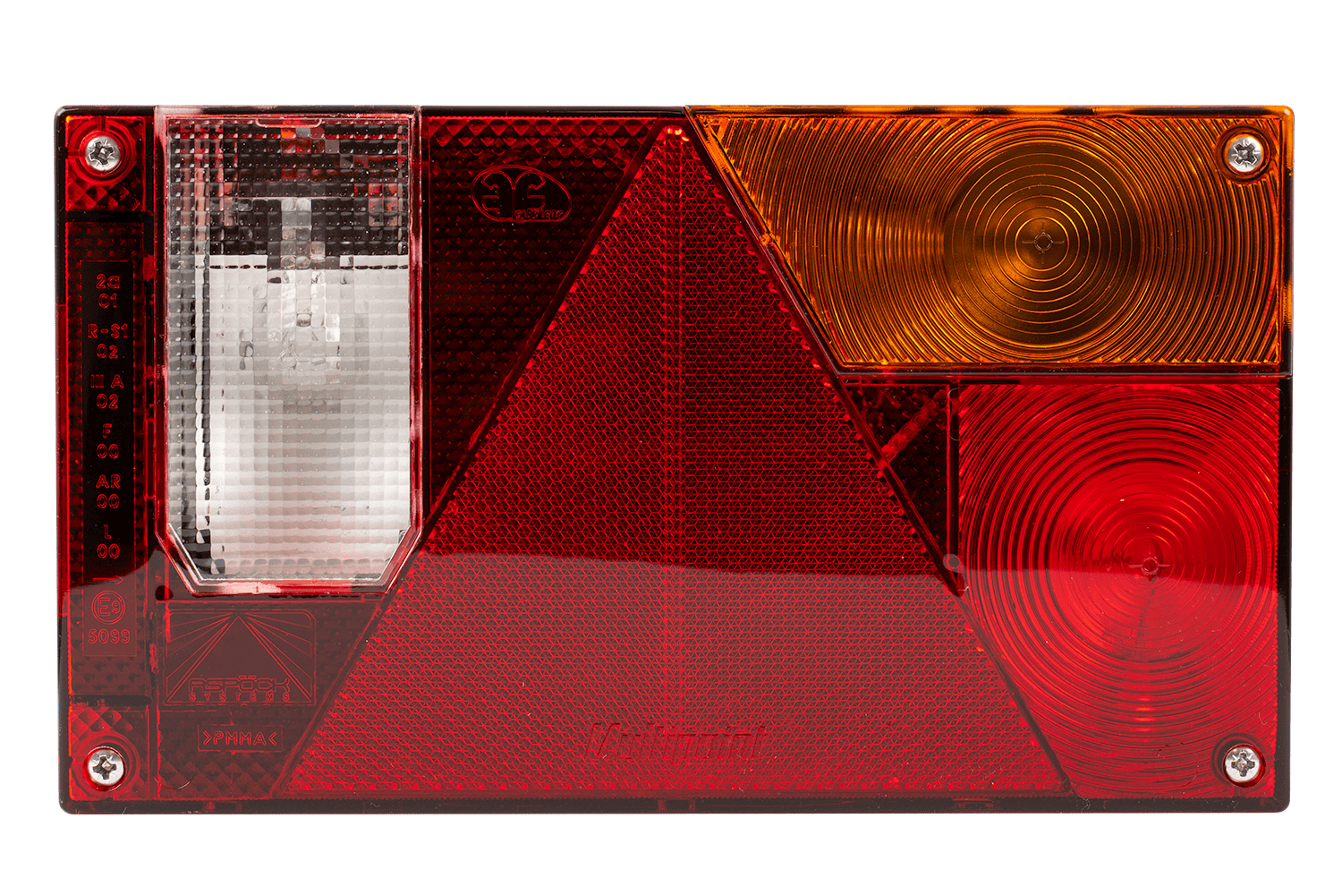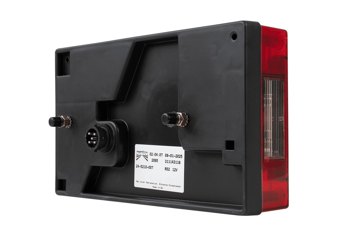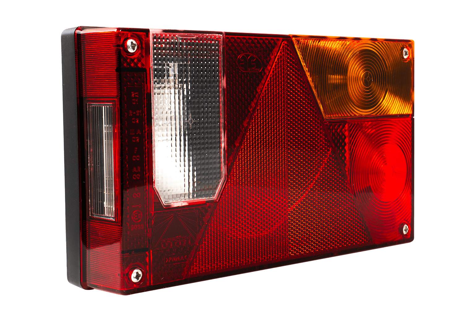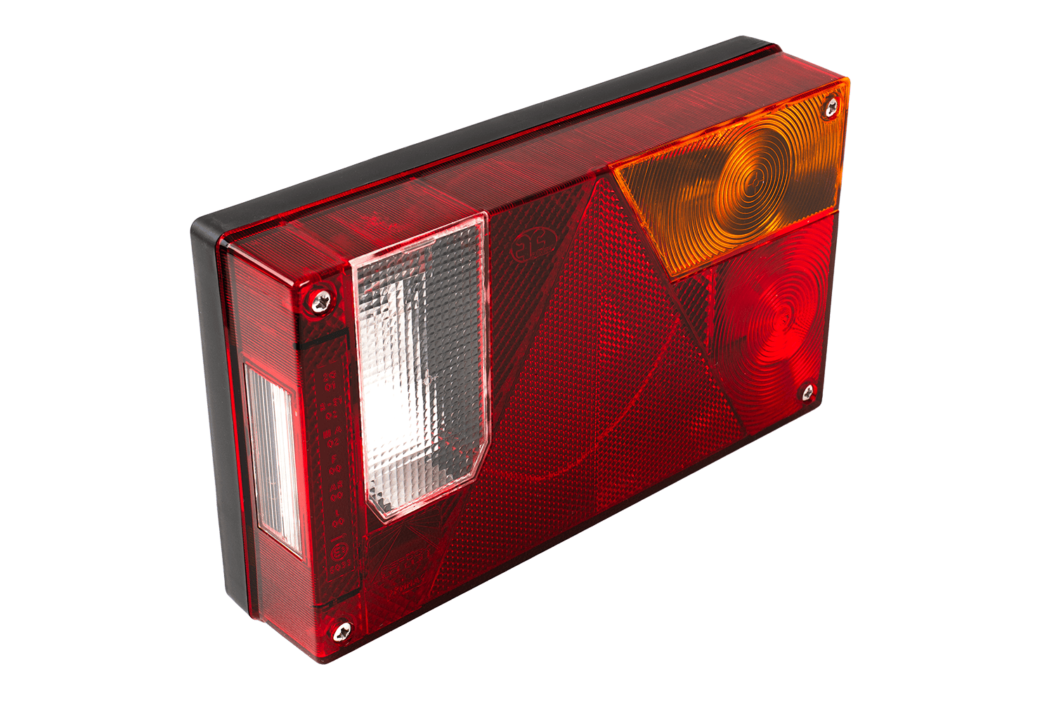 • Piloto trasero multipunto I para instalación en el lado derecho. Tiene las siguientes funciones: luz de posición, luz de freno, luz de marcha atrás, luz de matrícula, intermitente y reflector. Para uso en remolques, camiones y maquinaria agrícola.