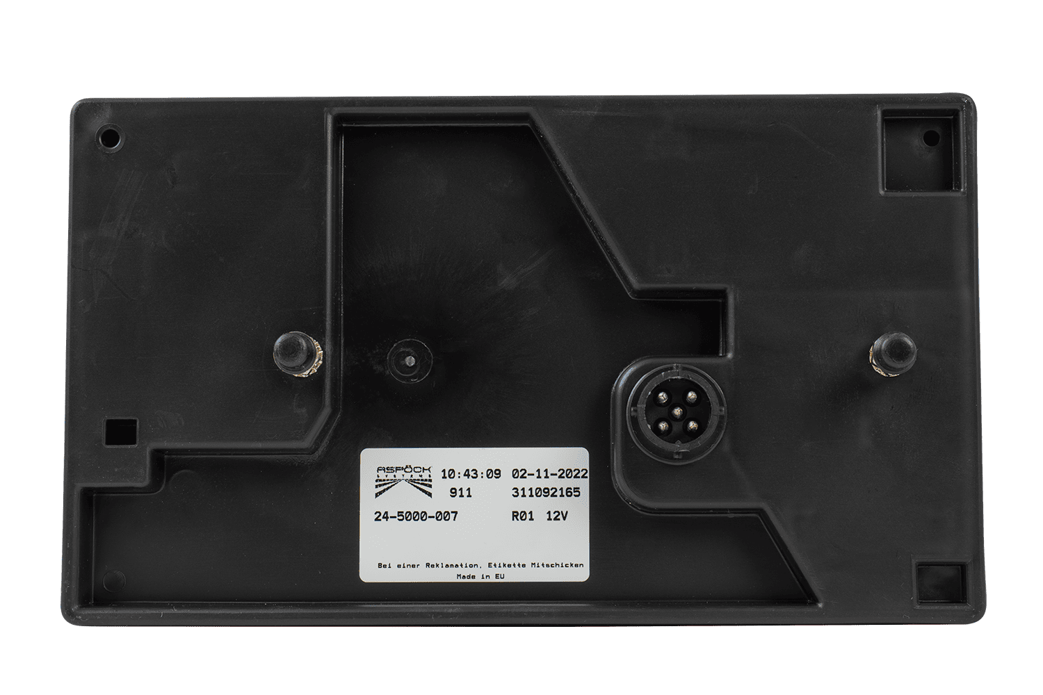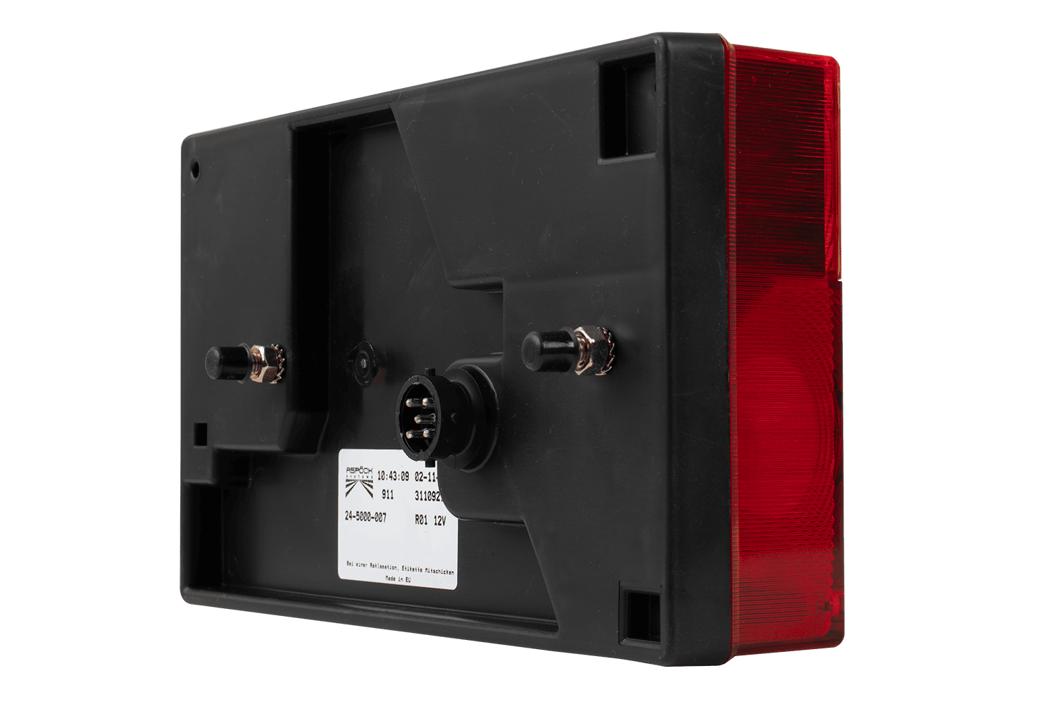 La luz trasera Multipoint I de ASPÖCK está diseñada para instalarse en el lado izquierdo del vehículo y tiene las siguientes dimensiones: ancho 240 mm, alto 140 mm, fondo 52 mm . Equipado con un conector de bayoneta de 5 pines , permite una instalación fácil y rápida en remolques, autobuses y grúas .