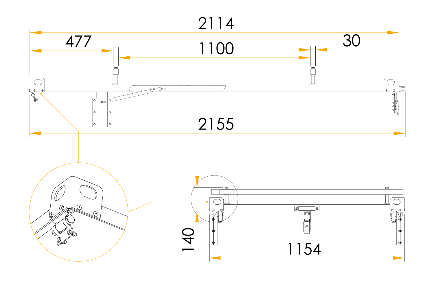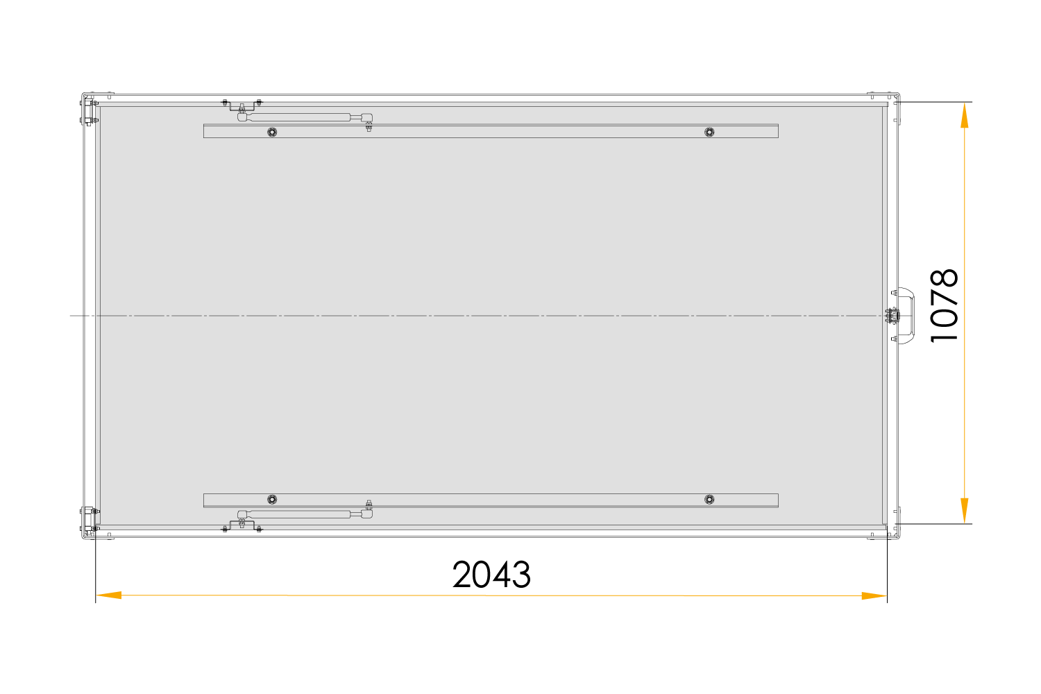 • Cubierta de aluminio con dimensiones 2155x1154 mm (espesor de chapa de aluminio 3 mm ),