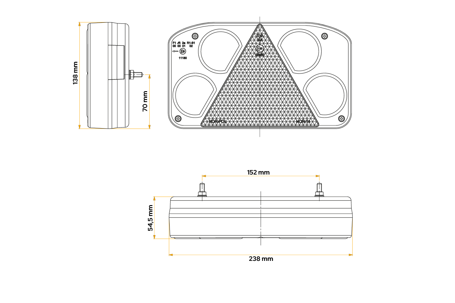 La luz trasera LED LZD 844 de HORPOL está diseñada para su montaje en el lado derecho del vehículo y tiene las siguientes dimensiones: ancho 238 mm, alto 138 mm, profundidad 54,5 mm . Diseñado para operar dentro de un rango de voltaje de 12-24 V , puede ser utilizado en remolques, camiones y tráileres, lo que resalta su universalidad. La lámpara tiene un pasacables y el conjunto incluye un conector hembra, un tubo termorretráctil y una brida para una conexión de cables rápida y cómoda. Gracias al uso de tecnología LED, la lámpara proporciona un alto rendimiento, durabilidad y eficiencia energética, garantizando la seguridad en diversas condiciones de la carretera.