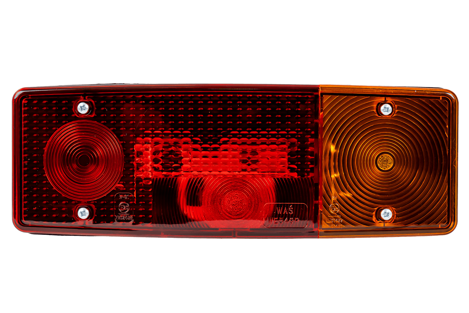 • Luz trasera WE549P WAŚ para montaje en el lado derecho. Ofrece tres funciones: luz de posición, luz de freno y señal de giro. Ideal para uso en remolques, camiones, maquinaria agrícola.