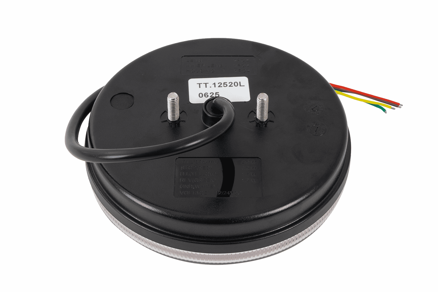 La luz trasera LED TT.12520L de TT TECHNOLOGY está diseñada para su montaje en el lado izquierdo del vehículo y tiene las siguientes dimensiones: diámetro 140 mm y profundidad 38 mm . Diseñado para operar dentro de un rango de voltaje de 12-24 V , se puede utilizar en remolques, camiones y grúas, lo que resalta su universalidad. Equipado con un cable de 0,36 m de longitud , permite una instalación fácil y rápida. Gracias al uso de tecnología LED, la lámpara proporciona un alto rendimiento, durabilidad y eficiencia energética, garantizando la seguridad en diversas condiciones de la carretera.
