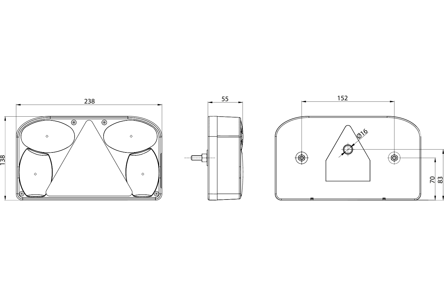 La luz trasera FT-088 de FRISTOM está diseñada para su montaje en el lado derecho del vehículo y tiene las siguientes dimensiones: ancho 238 mm, alto 138 mm, profundidad 55 mm . Hay una arandela de goma en la parte posterior de la lámpara que facilita la conexión del cable, lo que la convierte en una solución ideal para su uso en remolques, autobuses y grúas.