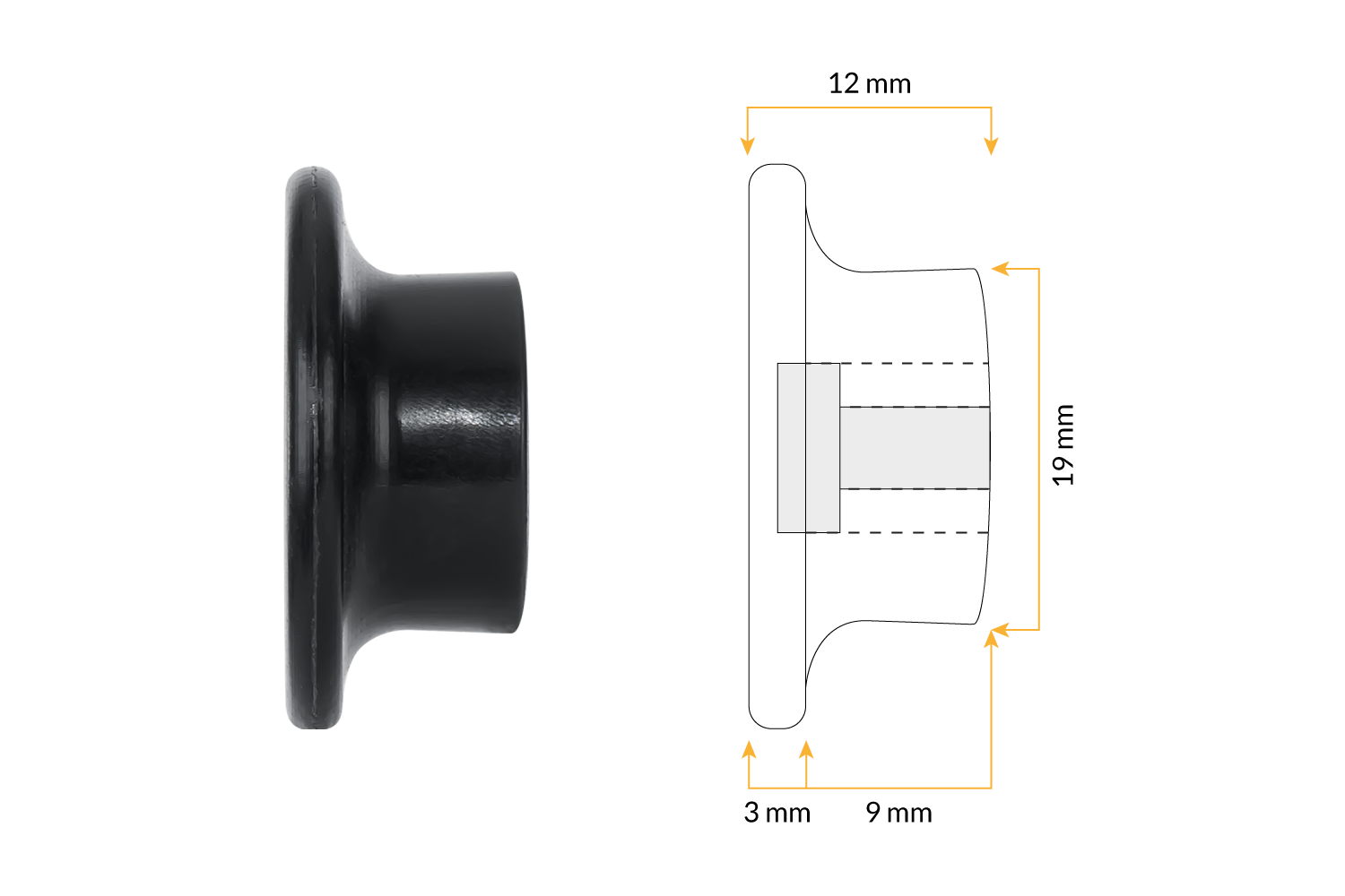 Rodillos laterales de TULPLAST para remolques, cada rodillo tiene un diámetro de 30 mm y una altura de 12 mm.